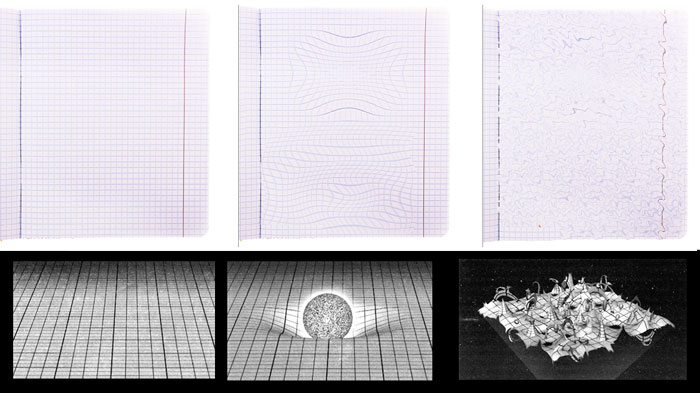 Клеточка в тетрадке по физике подстраивается под программу обучения — в начале обычная разлиновка по Ньютону, потом клетка с искривлениями по теории относительности, затем полный хаос квантовых флуктуаций.