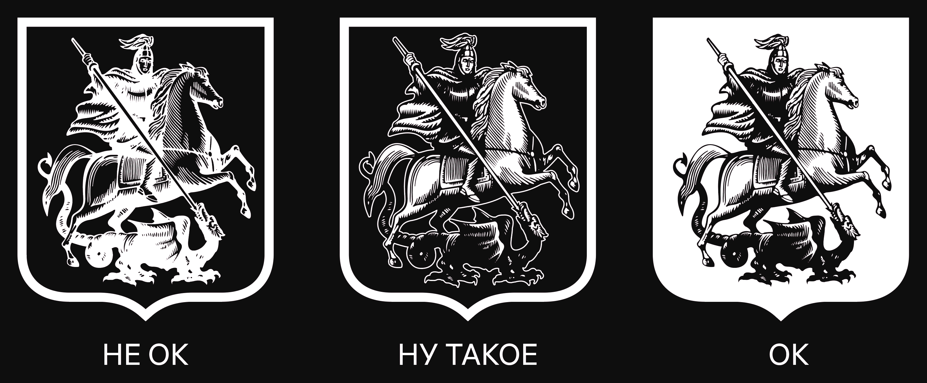 Нельзя просто инвертировать герб для нанесения на темный кузов транспорта. Ну и вообще — инвертировать векторную графику надо осторожно.