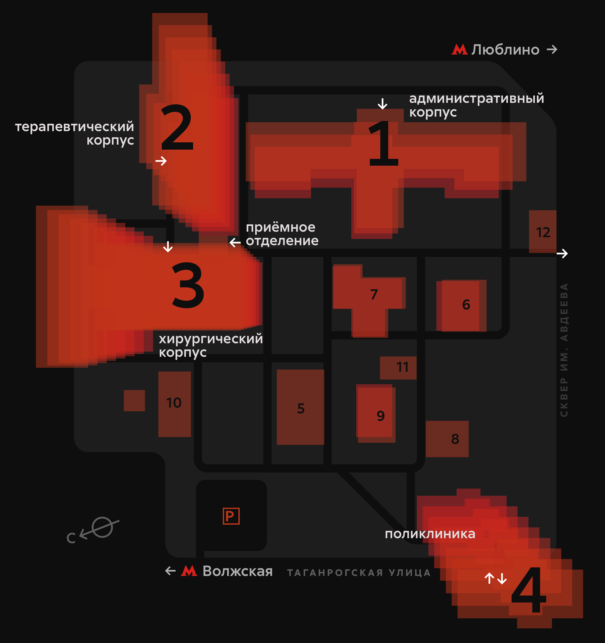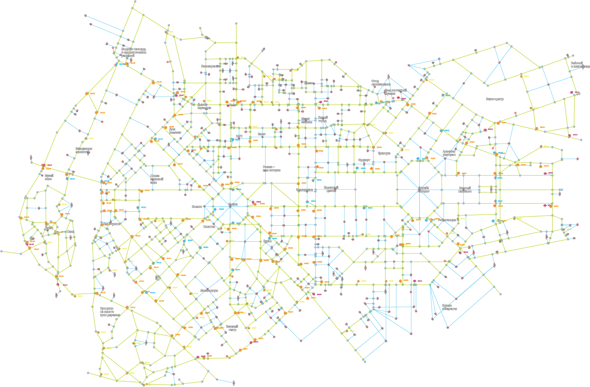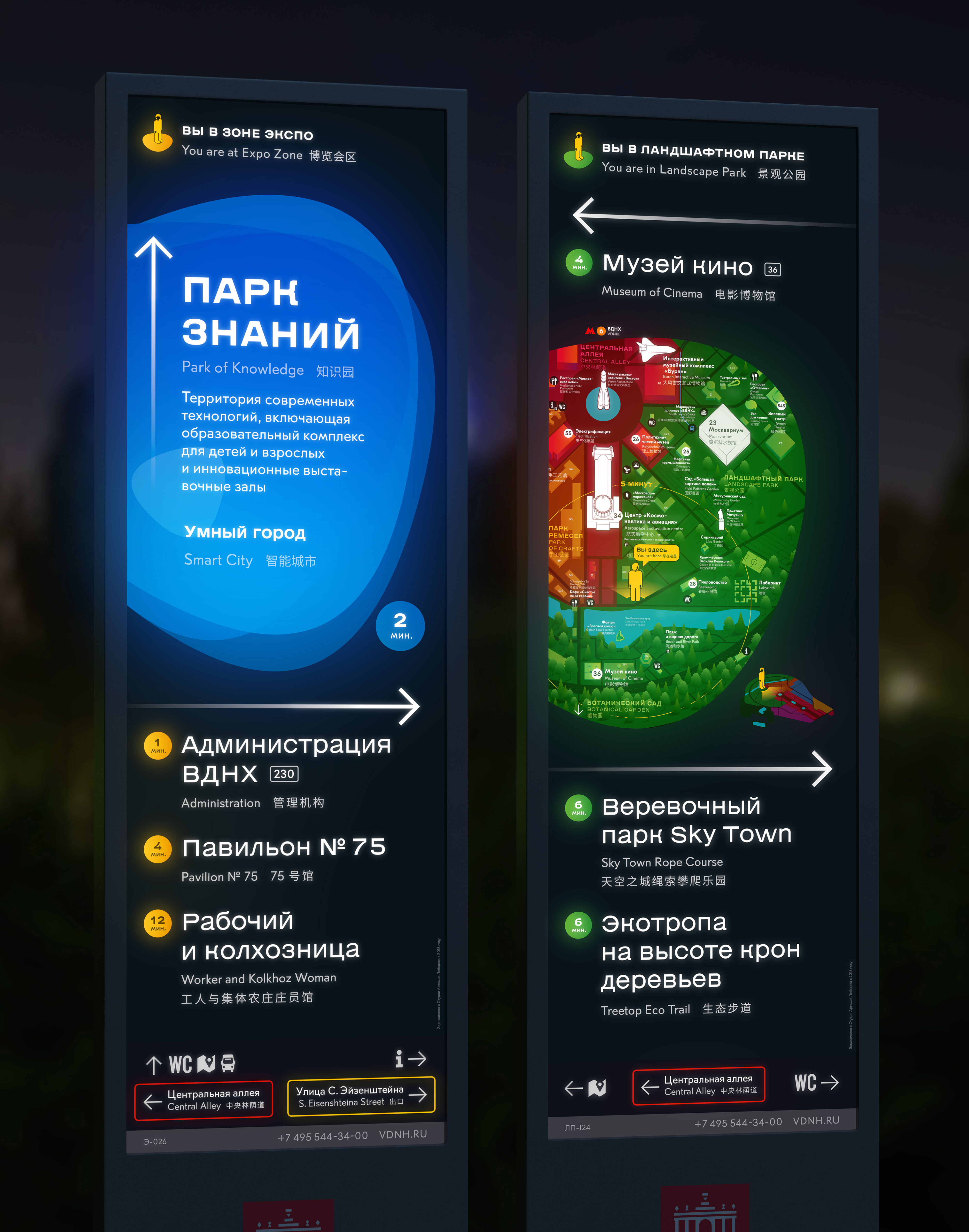 Ещё при разработке навигации для ВДНХ придумали навигационный граф, который позволяет автоматически подбирать информацию для указателей. Выглядел он как-то так: