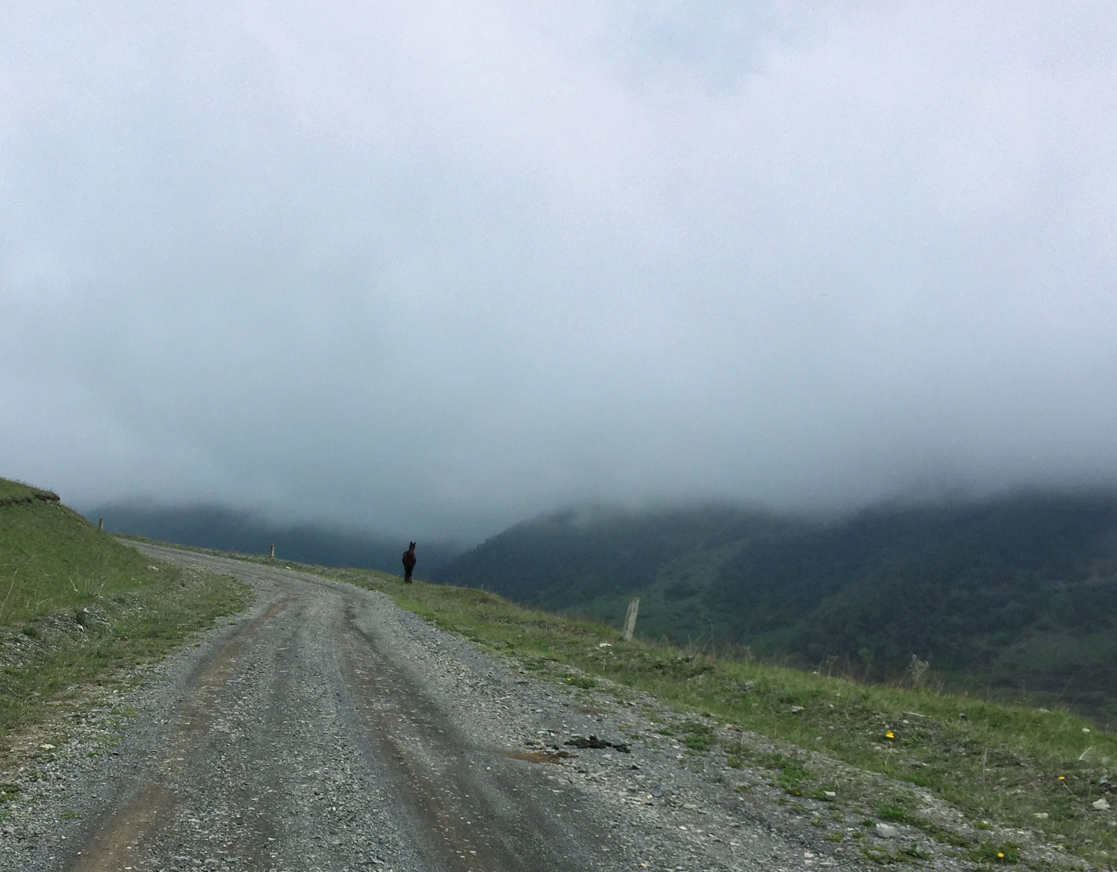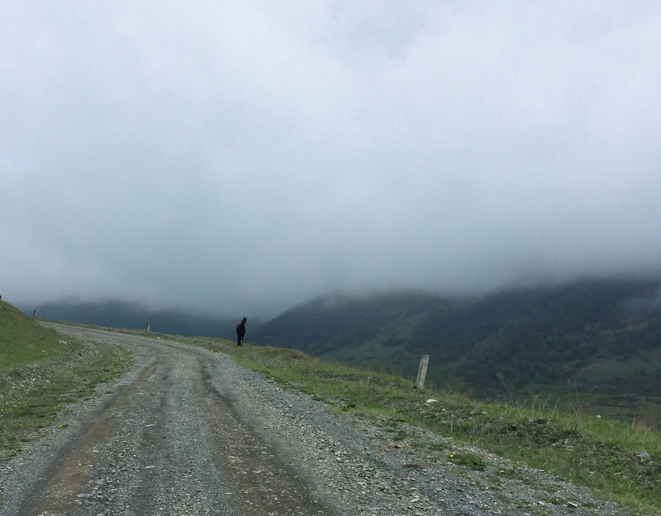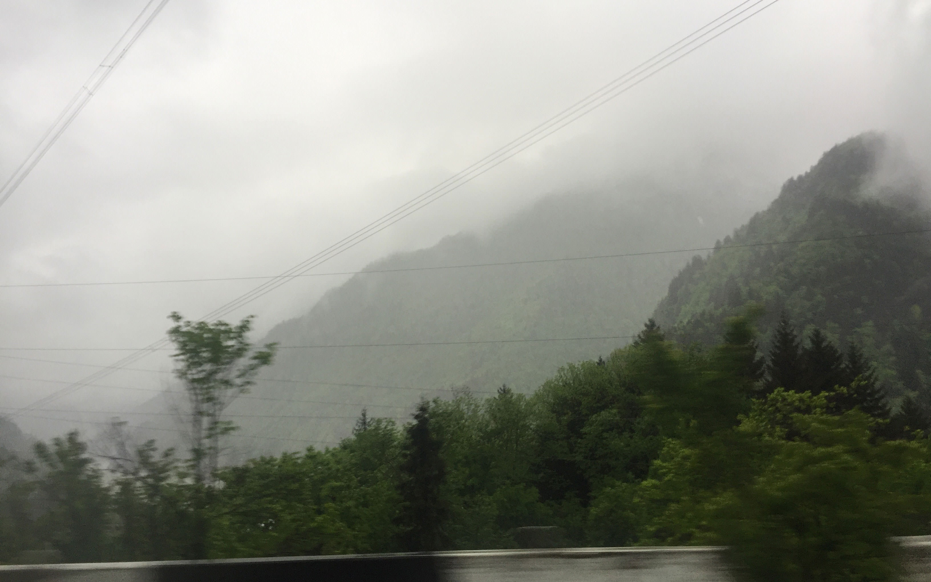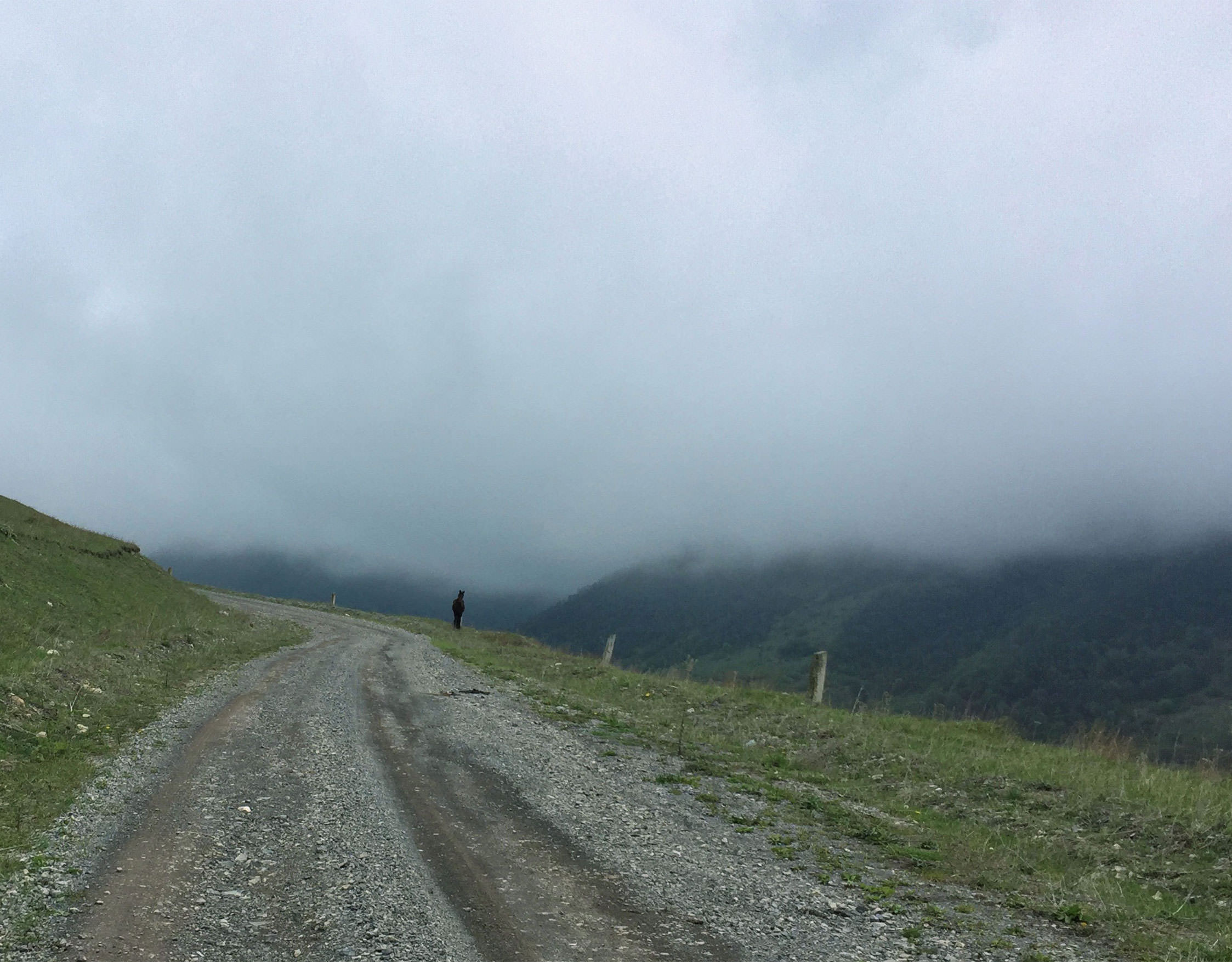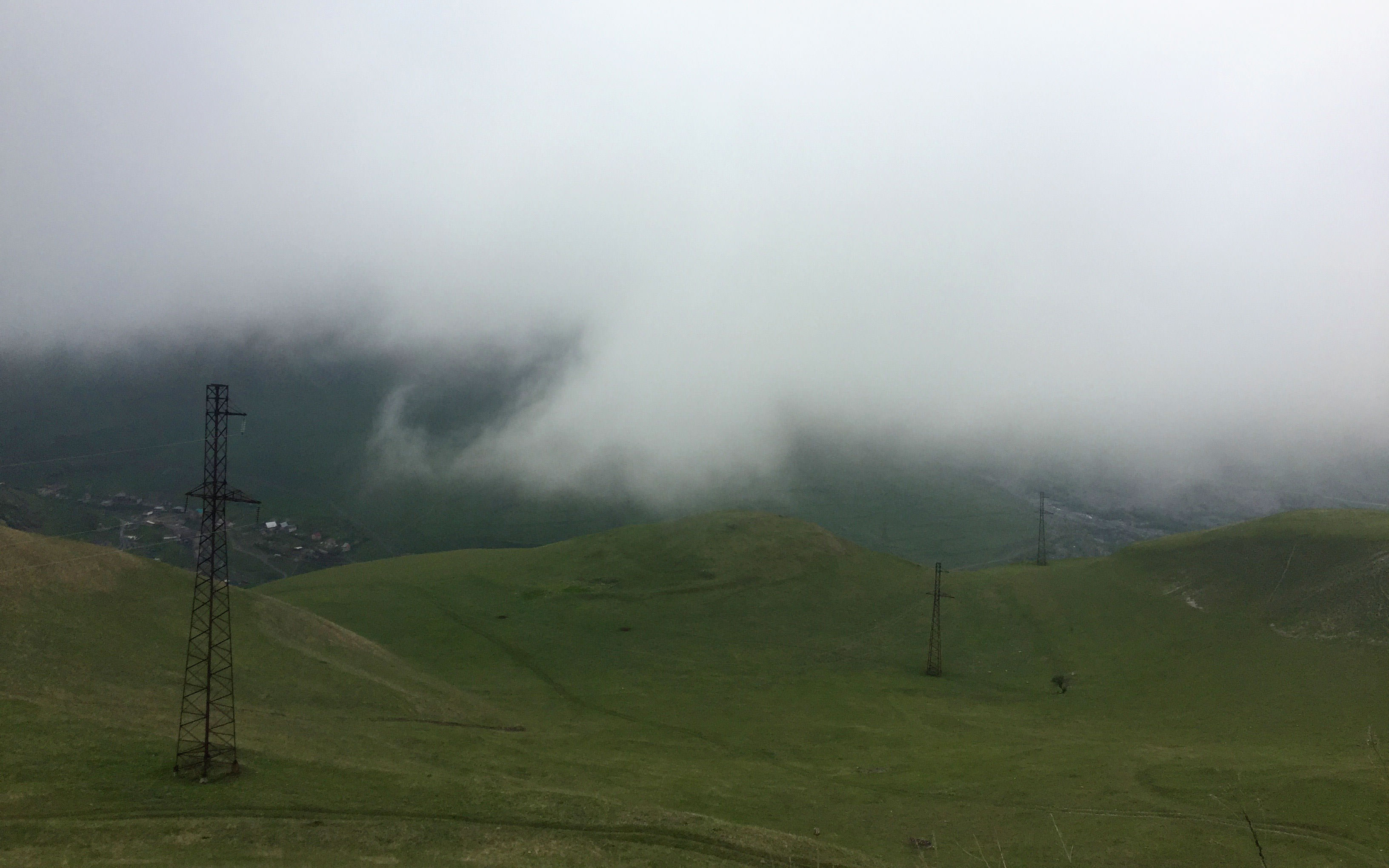 Идет сильный дождь, и те же места выглядят совсем не так, как в первую поездку. В машине снова отвратительная музыка, смесь попсы с шансоном. Репертуар был небольшой, всё на репите, так что каждую песню я прослушал раз пятнадцать. Иностранцы спрашивают, грузинская ли это музыка. Я отвечаю, что русская, хотя сделана с уклоном в грузинскую народную музыку.