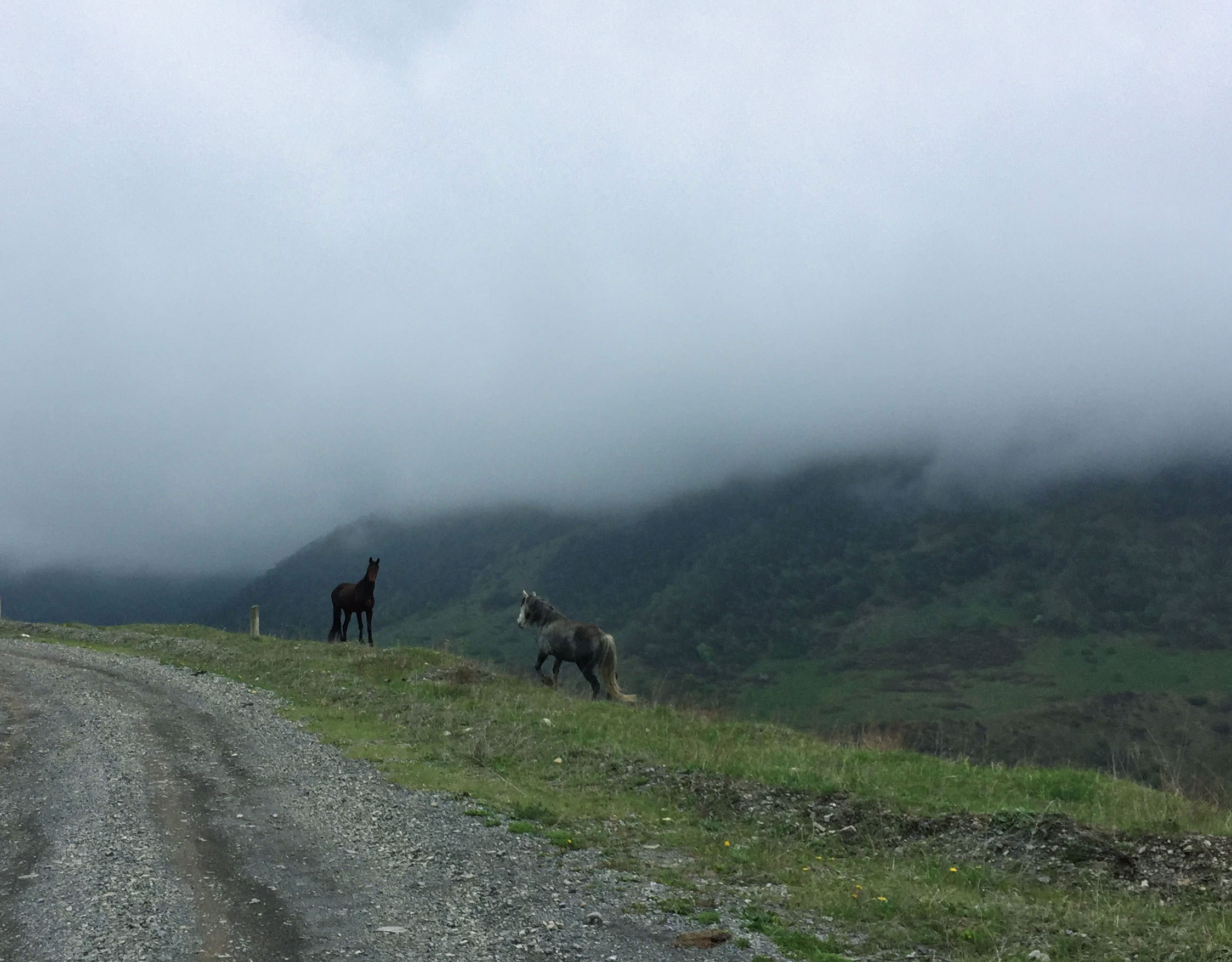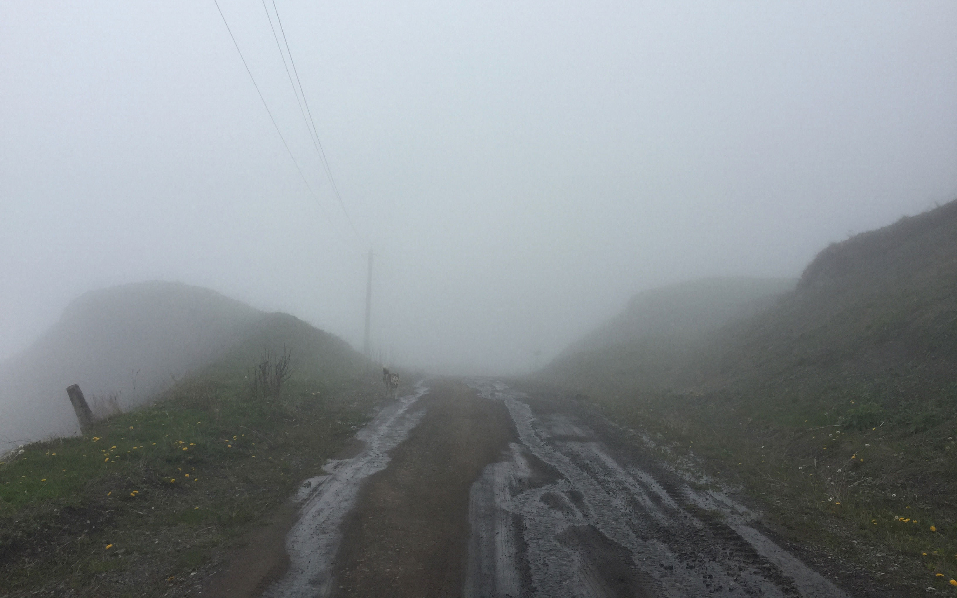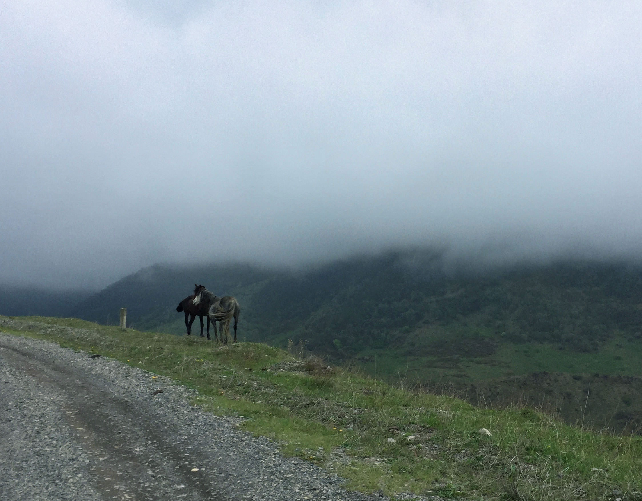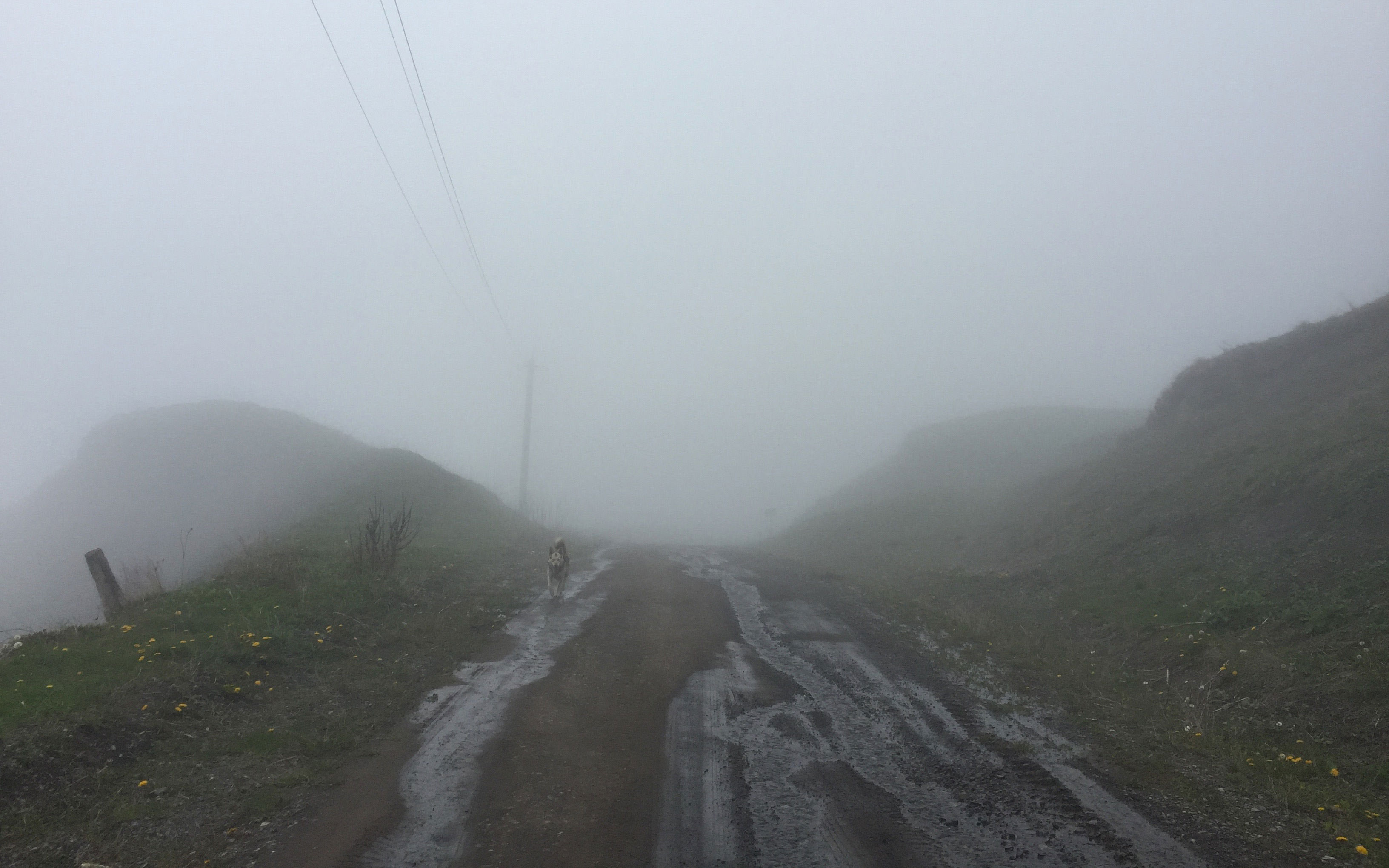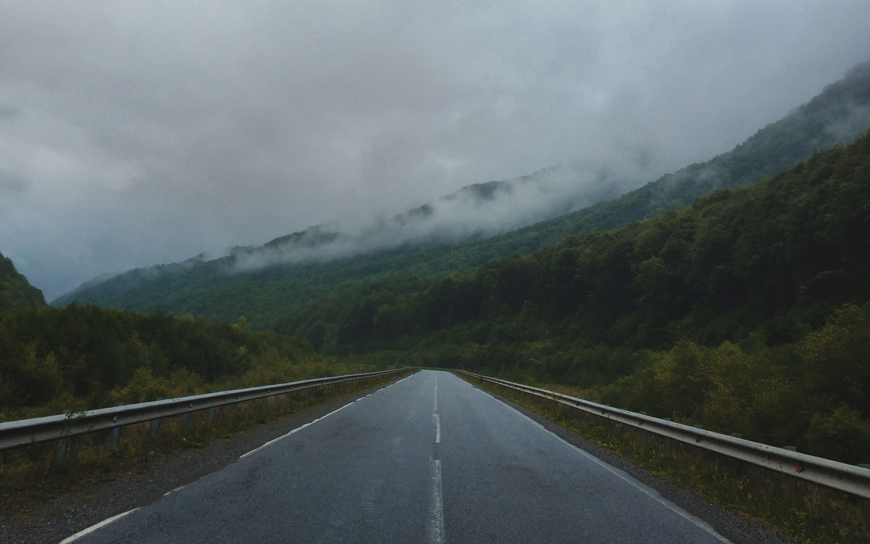 Идет сильный дождь, и те же места выглядят совсем не так, как в первую поездку. В машине снова отвратительная музыка, смесь попсы с шансоном. Репертуар был небольшой, всё на репите, так что каждую песню я прослушал раз пятнадцать. Иностранцы спрашивают, грузинская ли это музыка. Я отвечаю, что русская, хотя сделана с уклоном в грузинскую народную музыку.