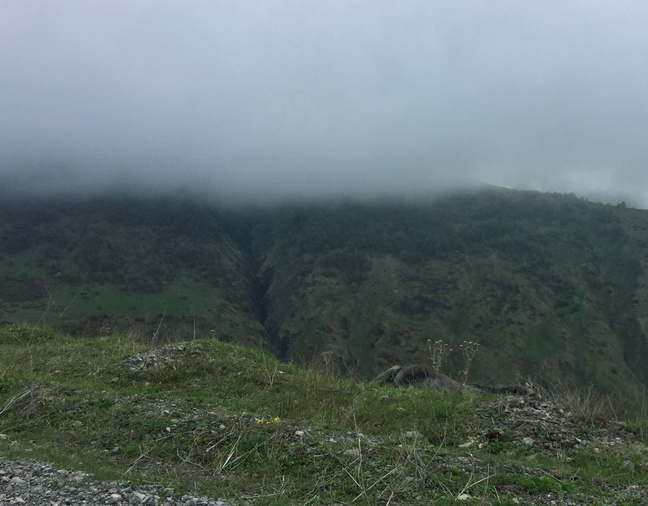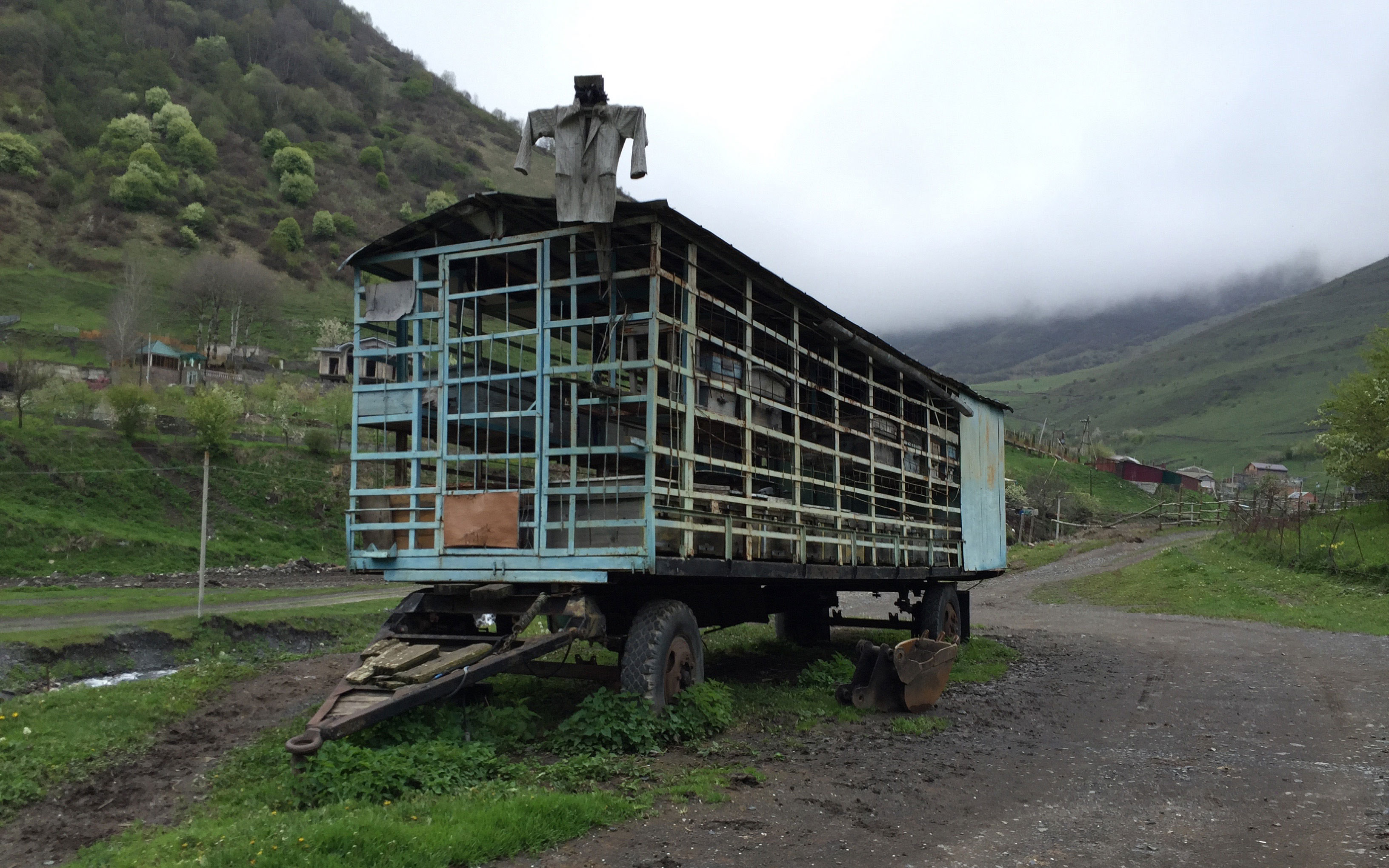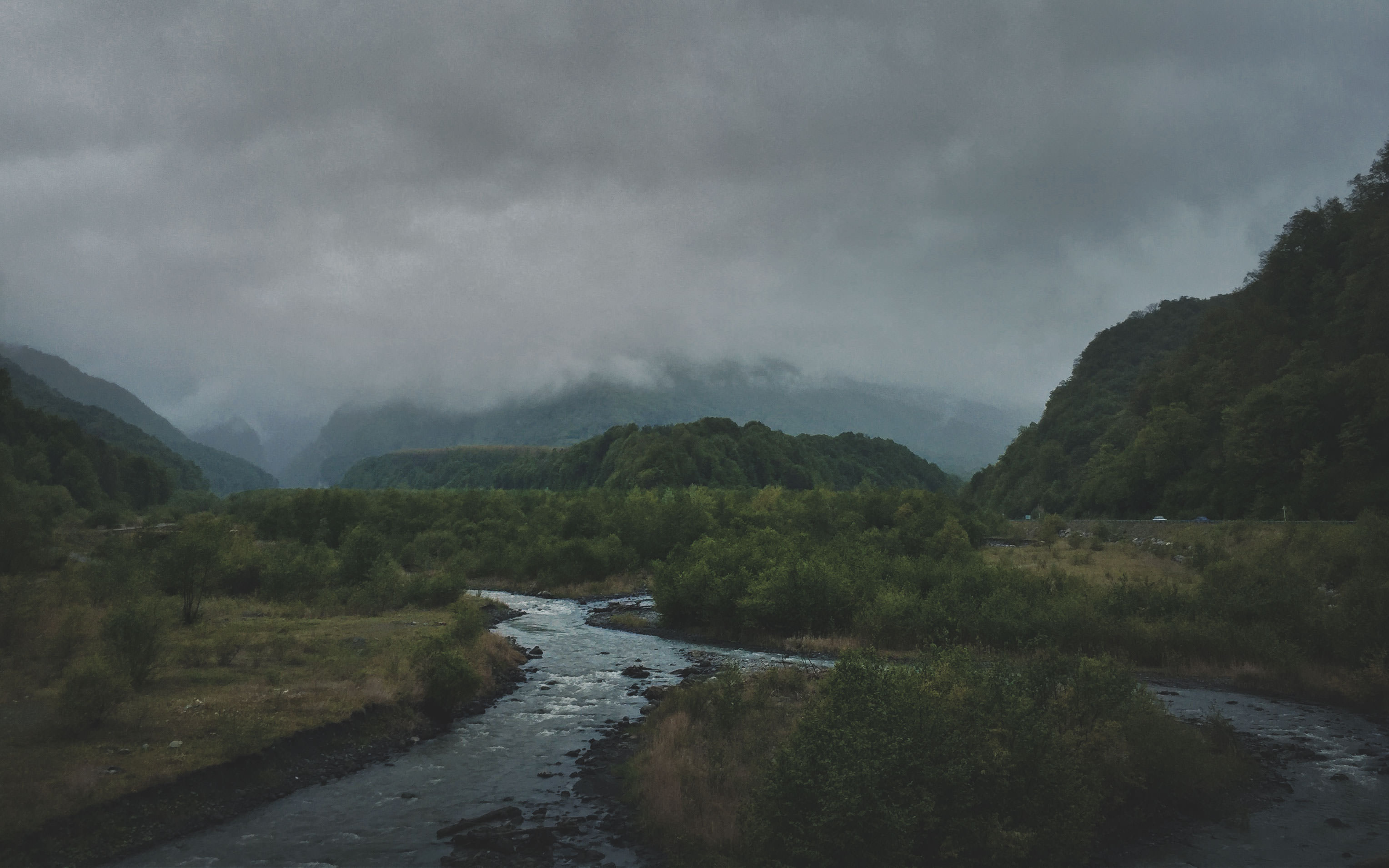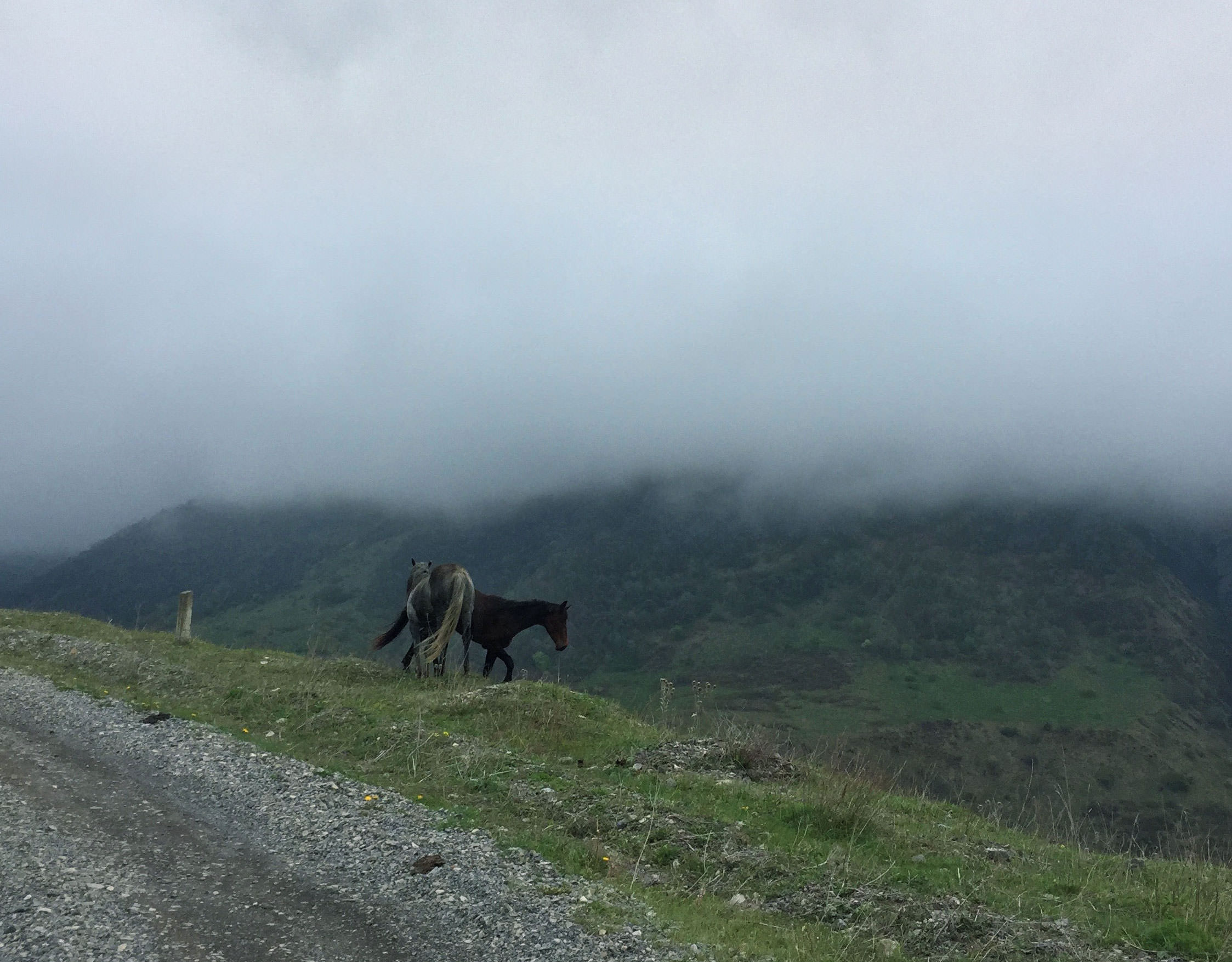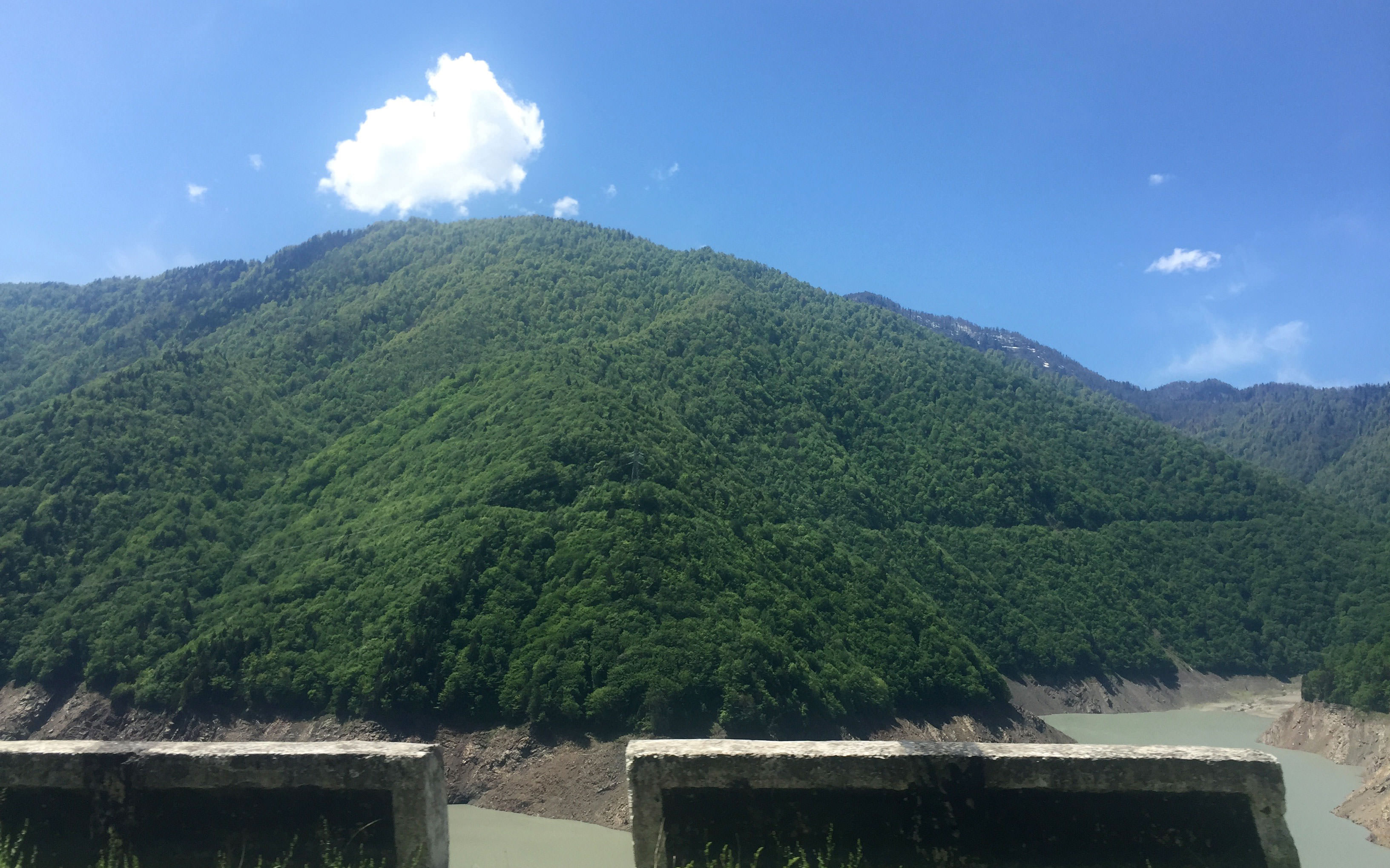 Идет сильный дождь, и те же места выглядят совсем не так, как в первую поездку. В машине снова отвратительная музыка, смесь попсы с шансоном. Репертуар был небольшой, всё на репите, так что каждую песню я прослушал раз пятнадцать. Иностранцы спрашивают, грузинская ли это музыка. Я отвечаю, что русская, хотя сделана с уклоном в грузинскую народную музыку.