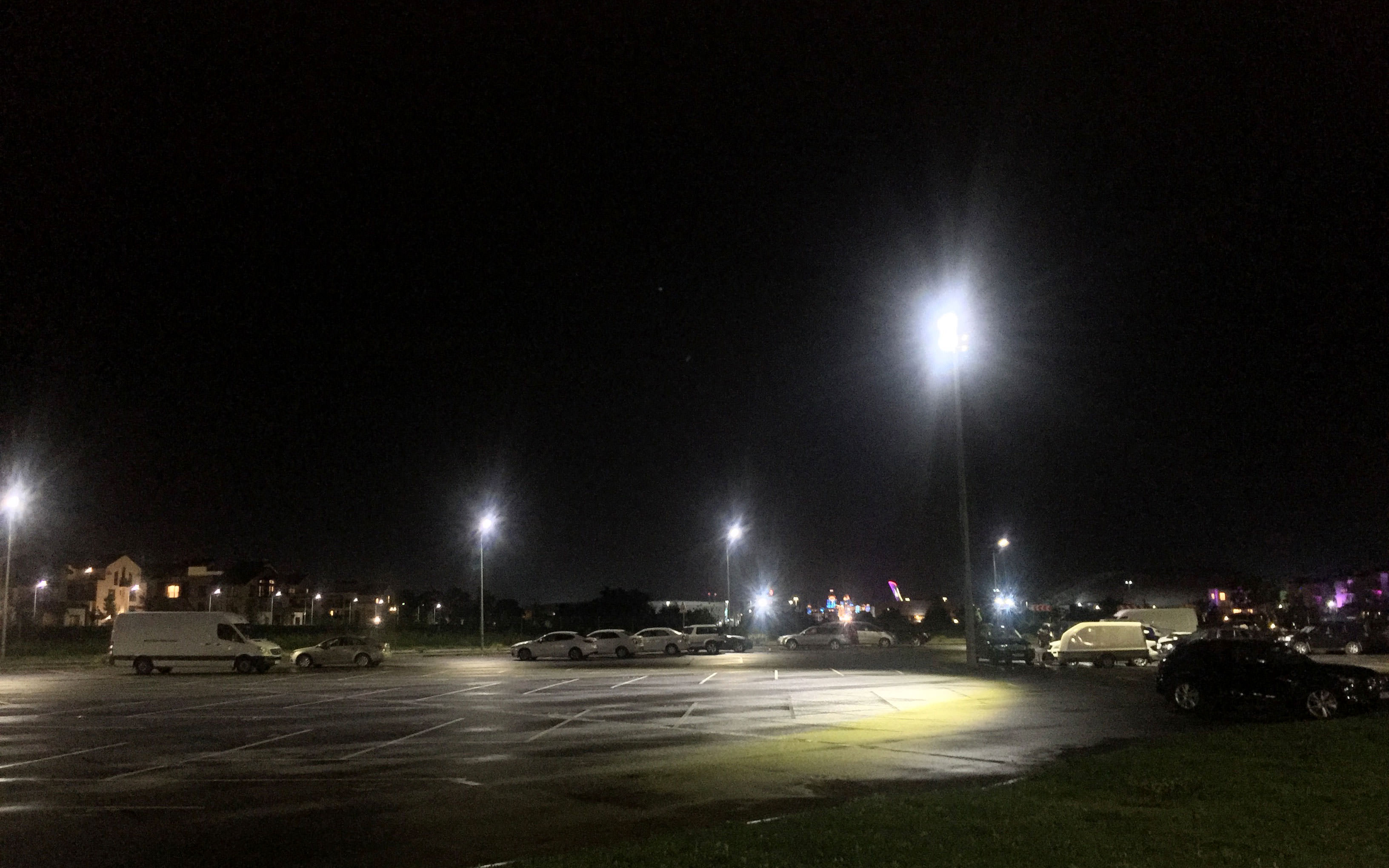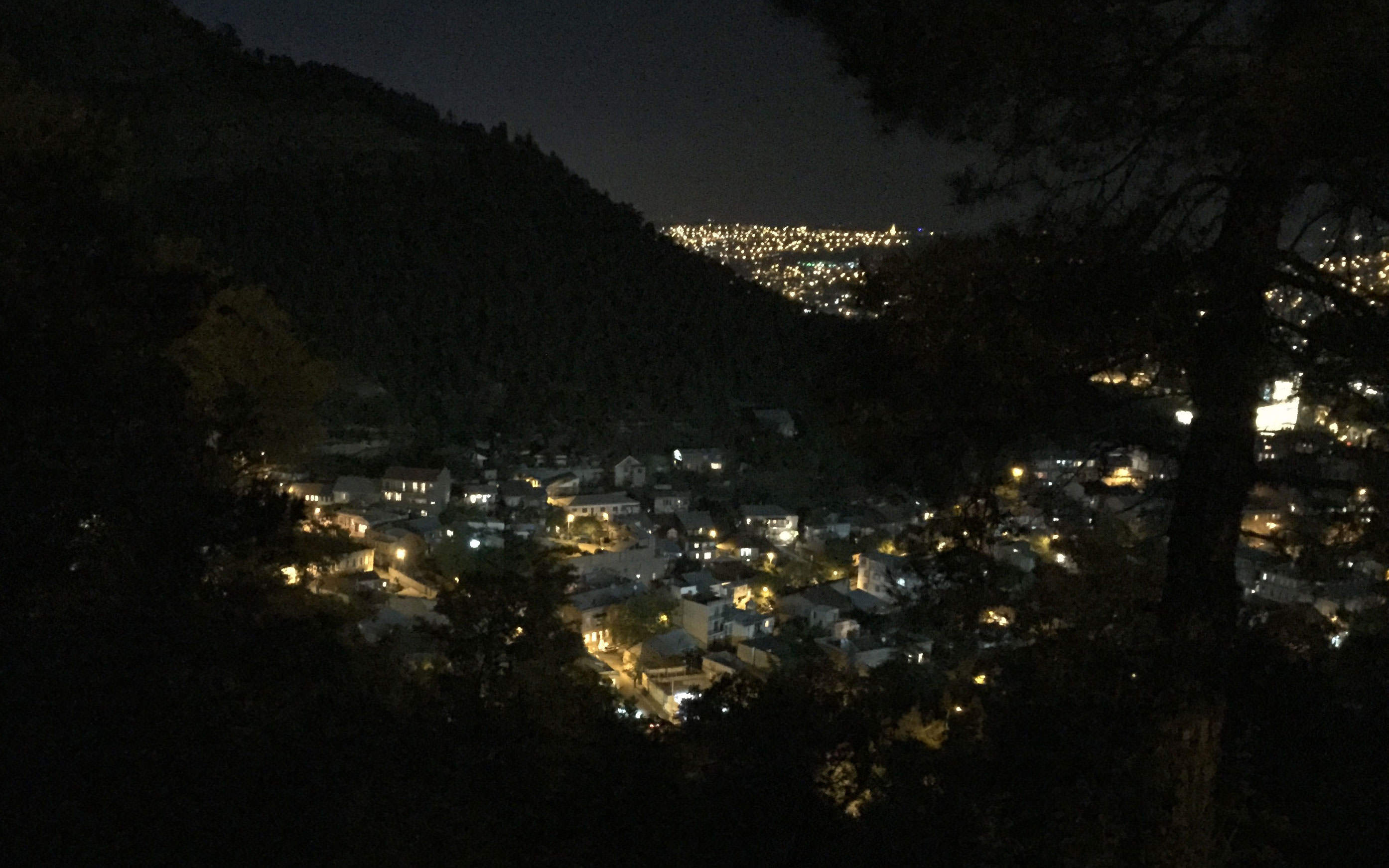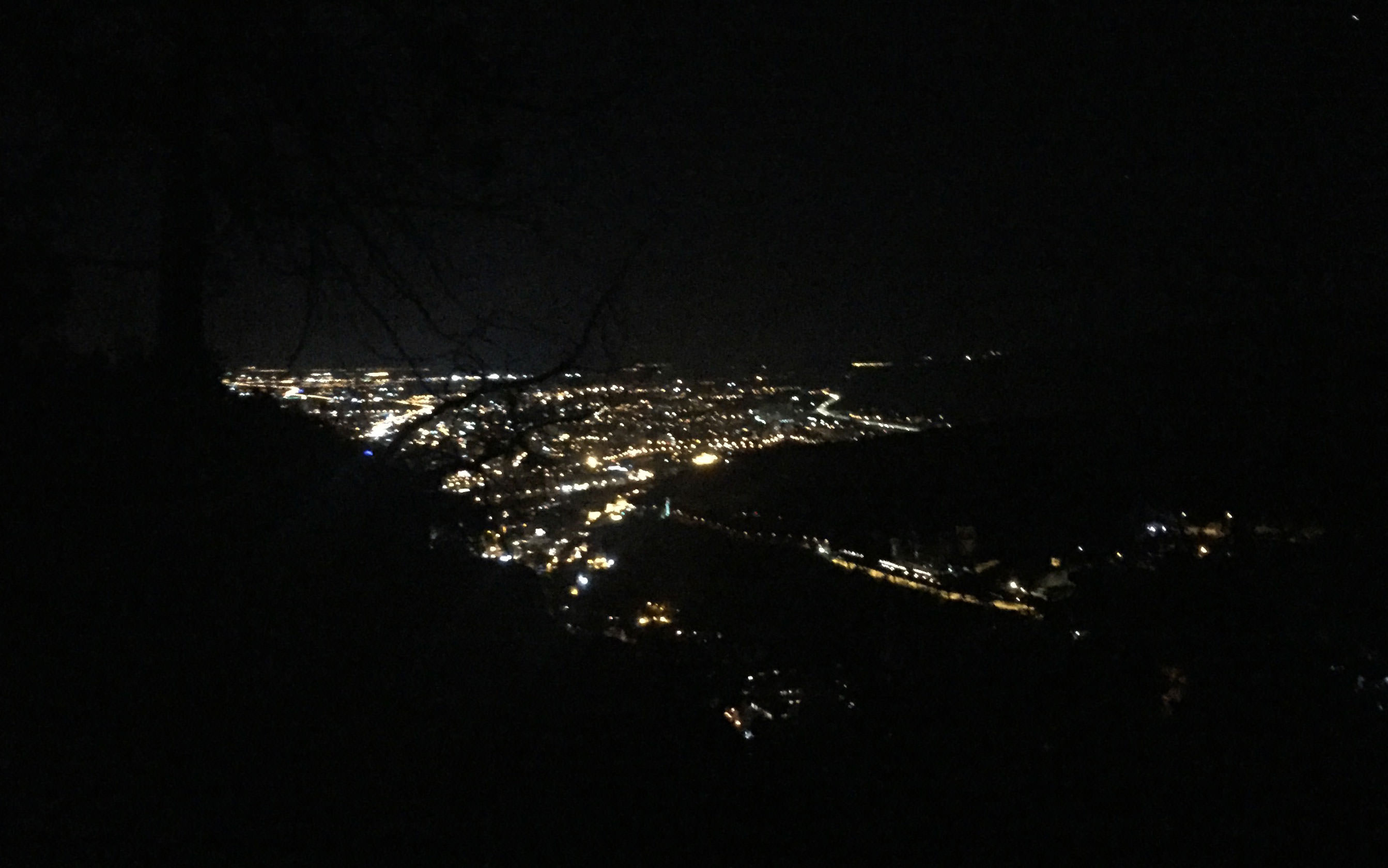 Уже через 15 минут подъема у меня был неплохой вид на город. Ярко светился футбольный стадион.