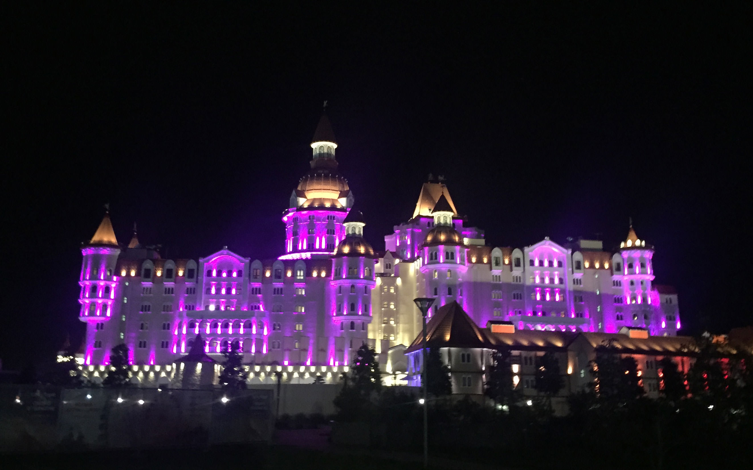 Наверху, кстати, гламур и кутеж: нормальные люди кальян жарят, ресторанчик какой-то, фонтан с подсветкой, плохая музыка из припаркованных машин. Конечно же, на эту вершину тоже была нормальная автомобильная дорога с другой стороны склона.