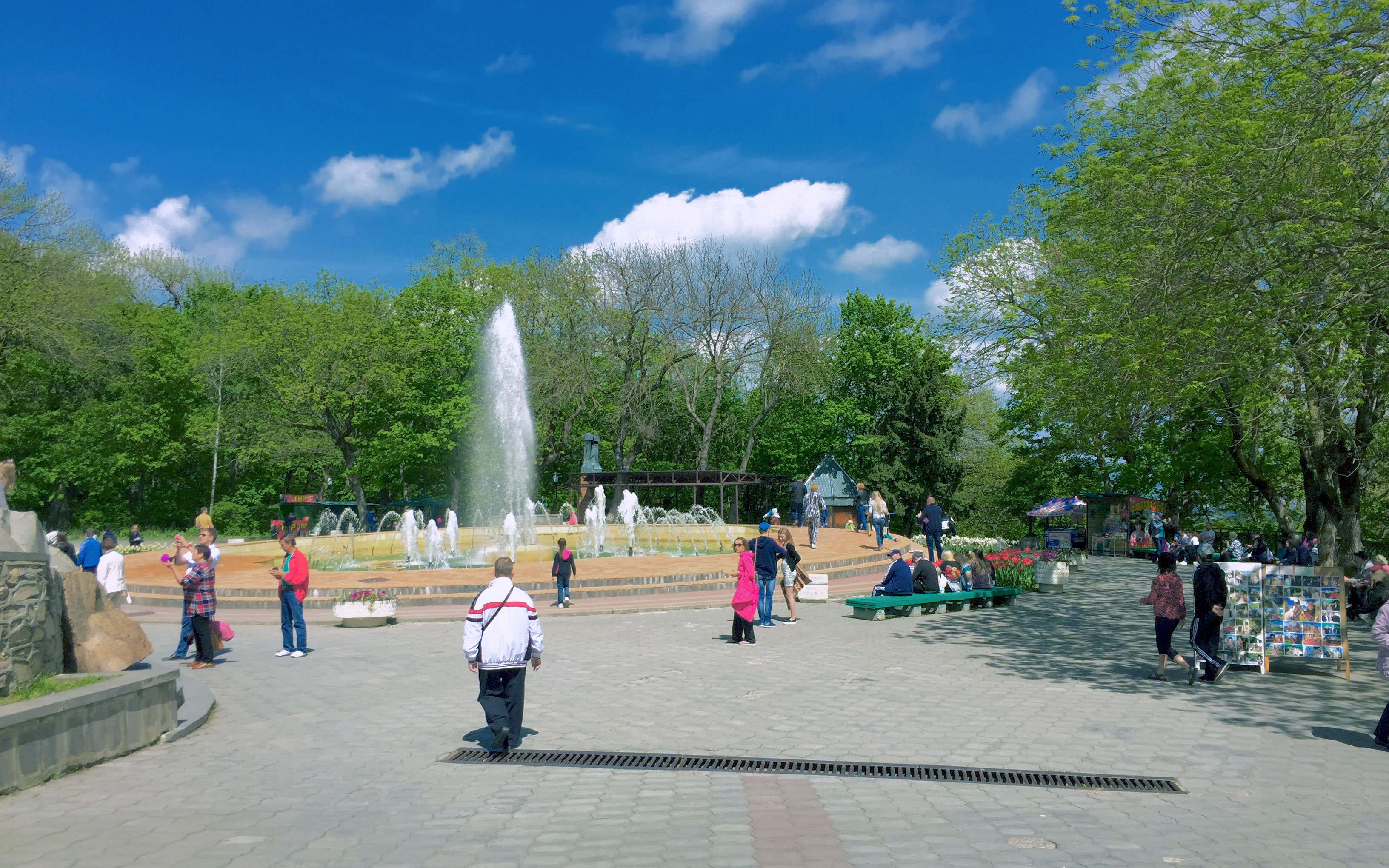 С удовольствием охладил ноги, но моя первоочередная цель всё же добыть воды, и я отправился наверх в город к бюветам минеральной воды.
