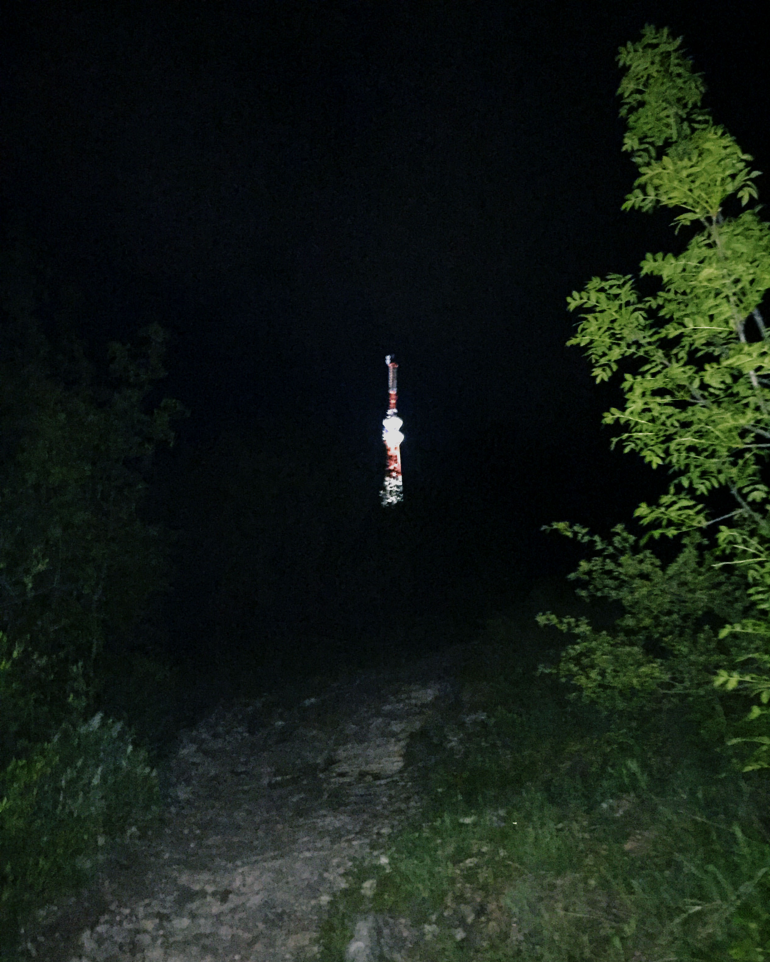 Через полчаса горного мата в темноте я выбираюсь на всё еще крутой, но необремененный кустами склон. Вдалеке видна моя цель — радиовышка на вершине.