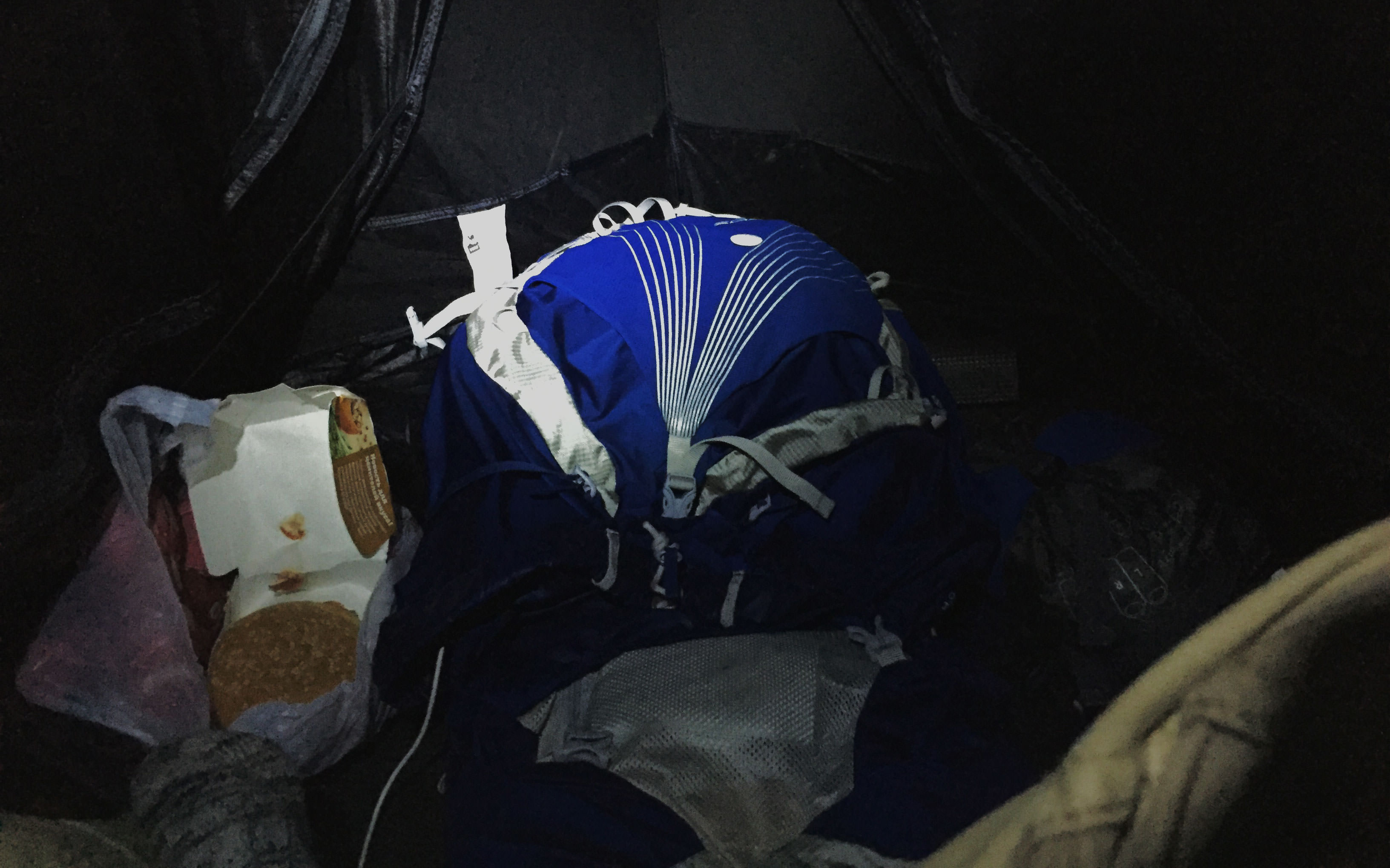 В палатке воняет сыростью — расплата за то, что поленился просушить в прошлый раз. Но я всё равно устроил себе праздник, купив себе накануне пачку чипсов.