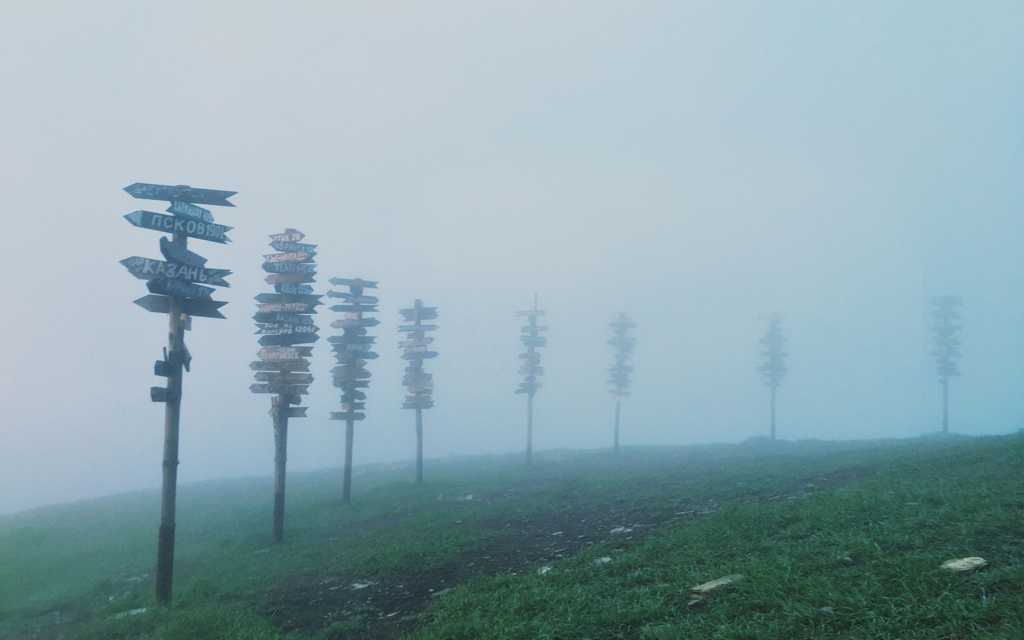 Укутываюсь по полной и выбираюсь наружу. За ночь на гору налетели облака, и я в самой гуще.