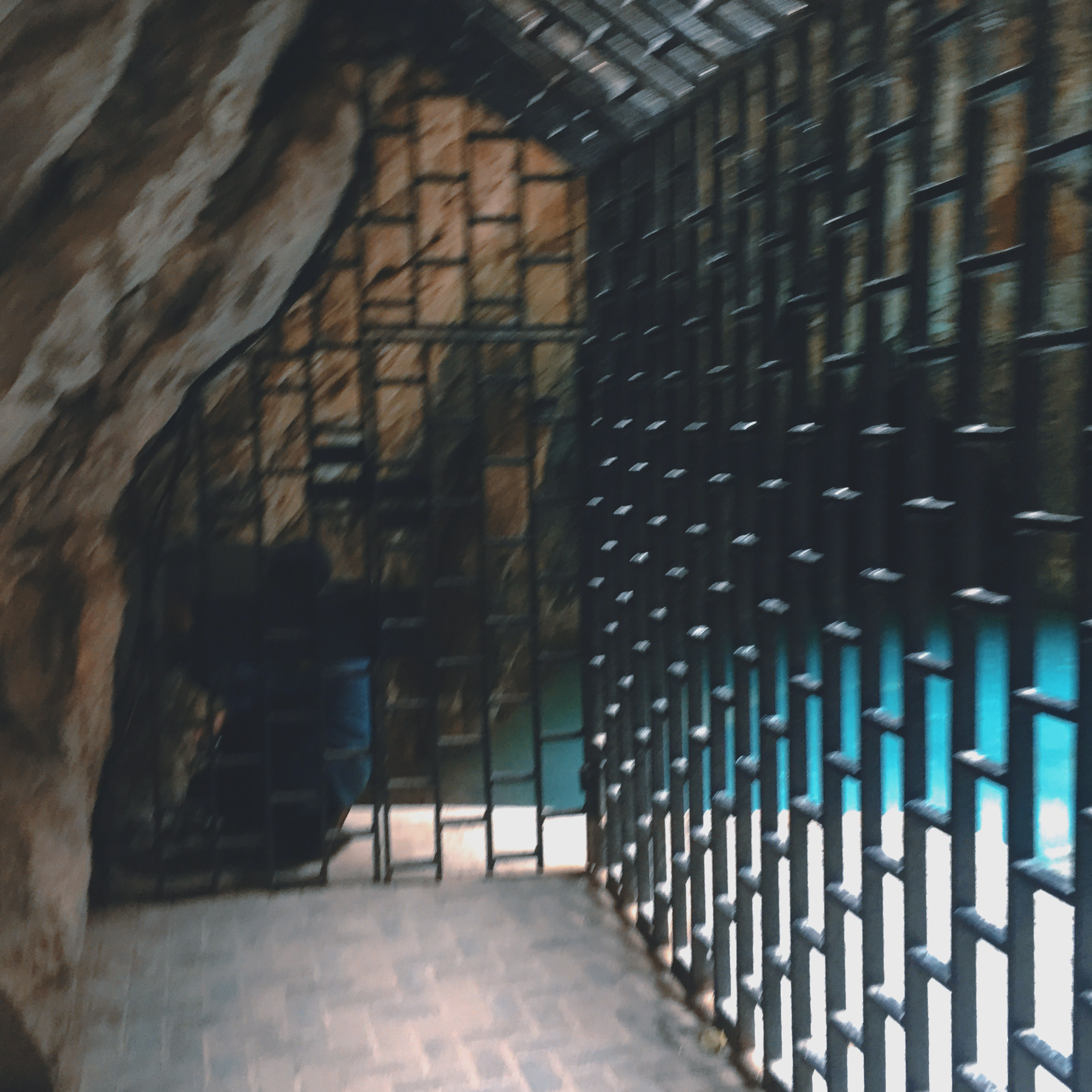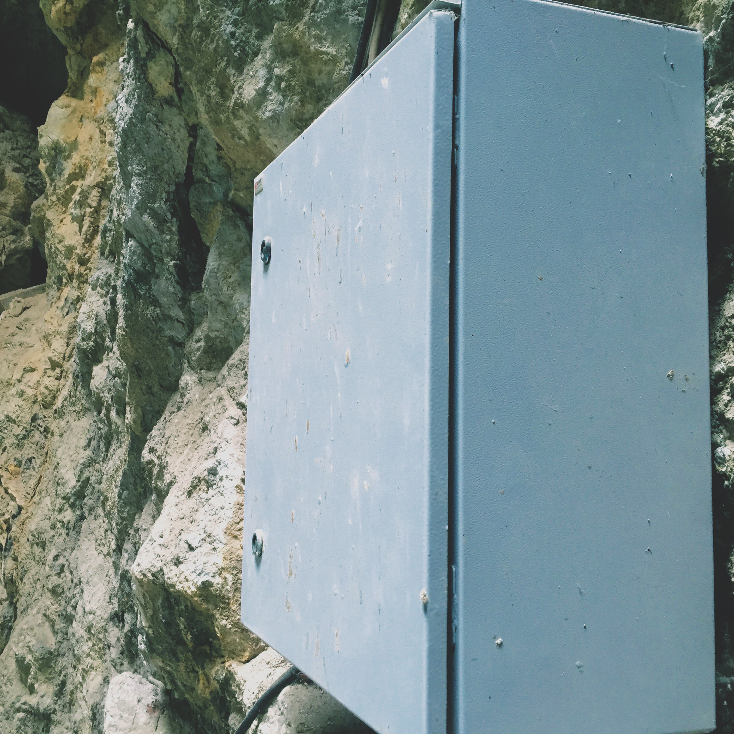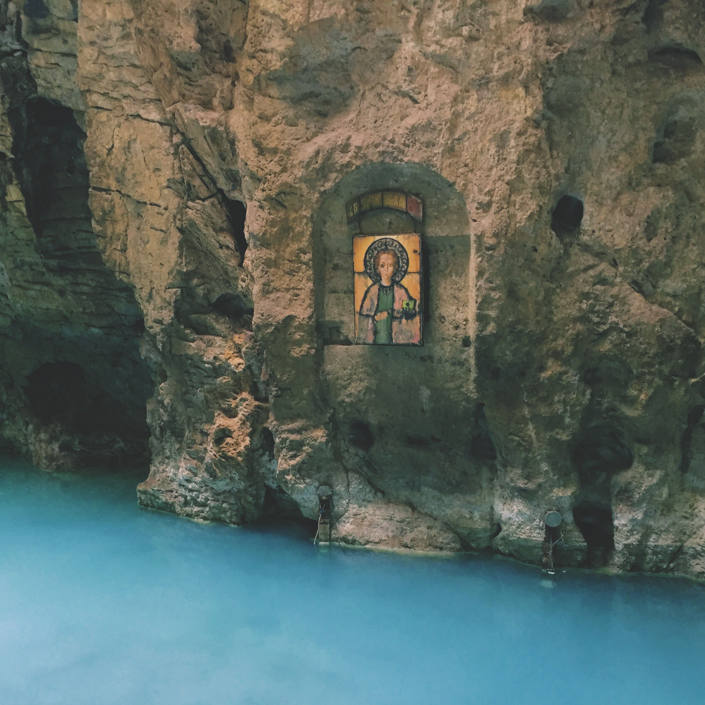 Короче, больше всего меня в провале впечатлила клетка для посетителей и электрощиток, деликатно встроенный в скальную породу. Ну и икона, куда без нее.