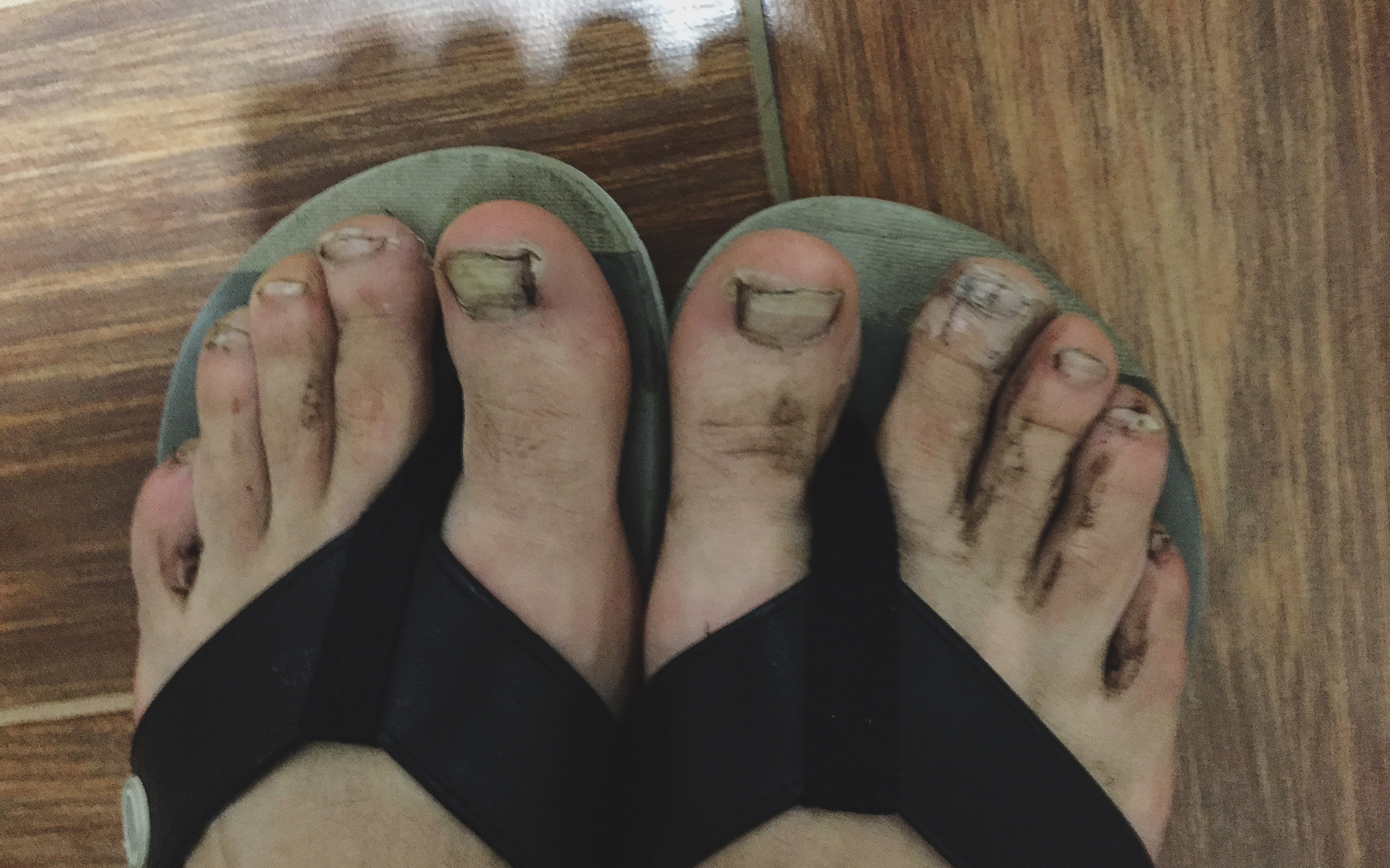 Чего уж там, ноги мои выглядели не лучшим образом (хотя на деле тут всего пару мозолей + много грязи).
