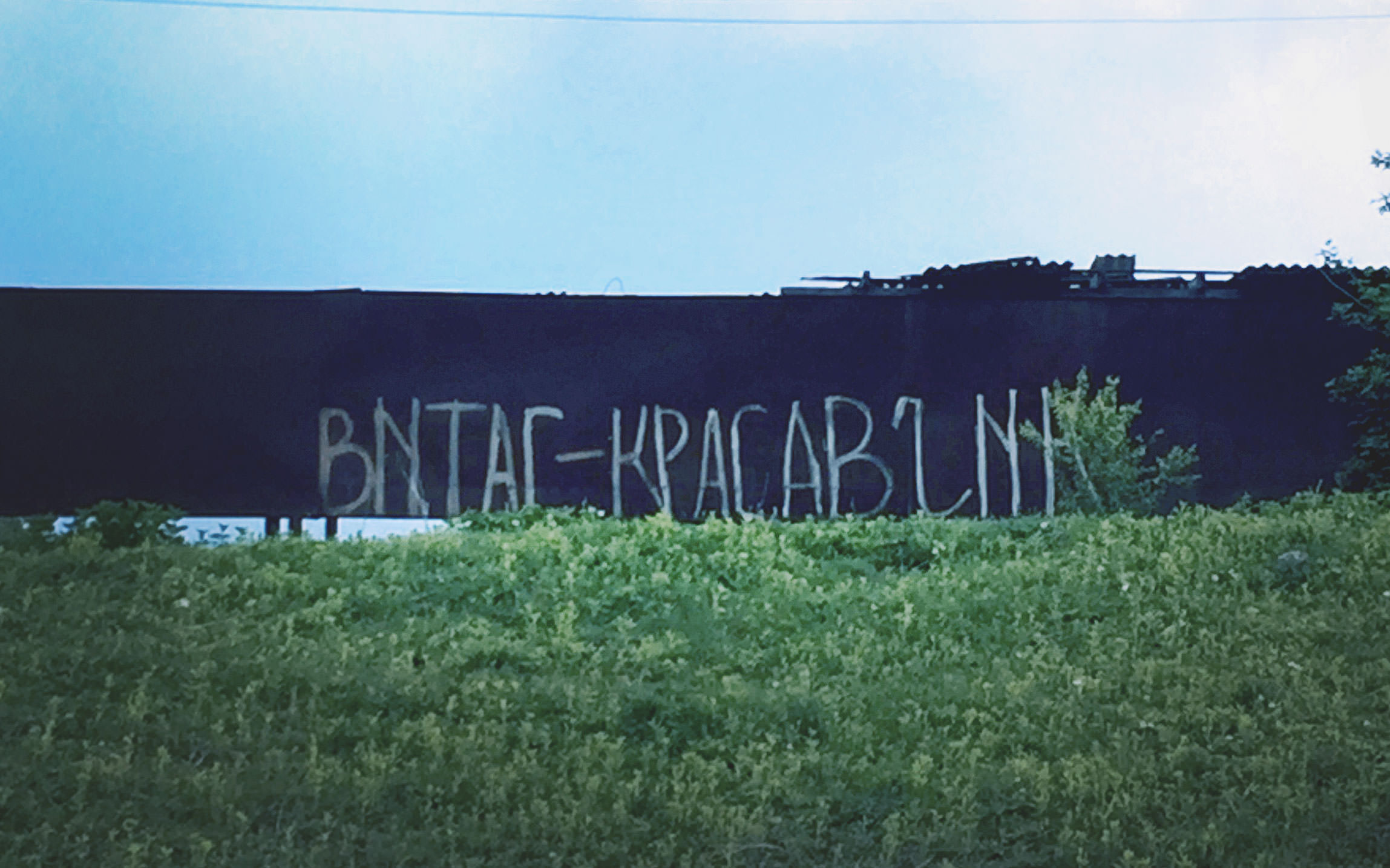 Дорога до Лермонтова тоже была унылой тропой в горку через лес, и единственное, что меня развеселило в дороге — надпись на заборе.