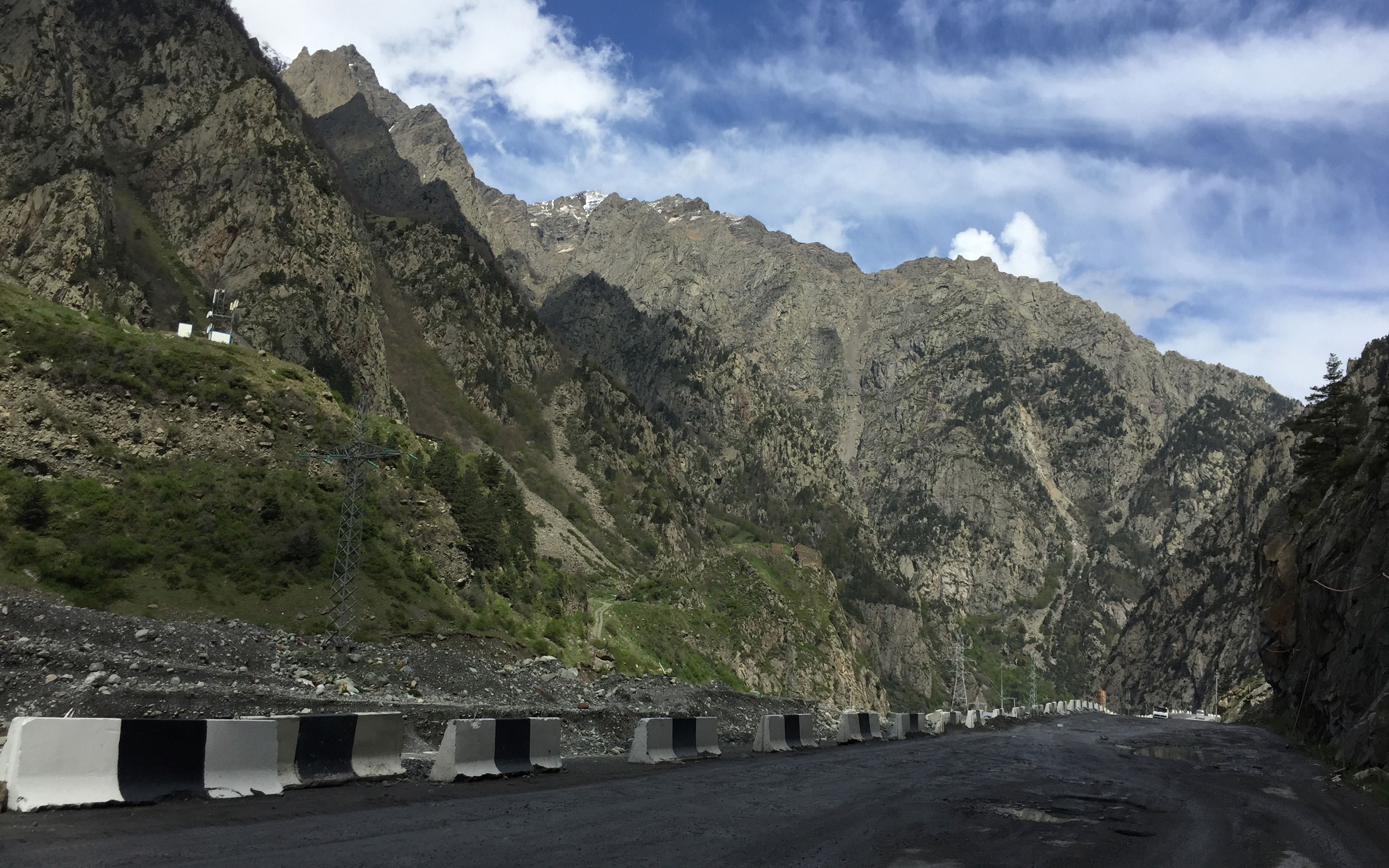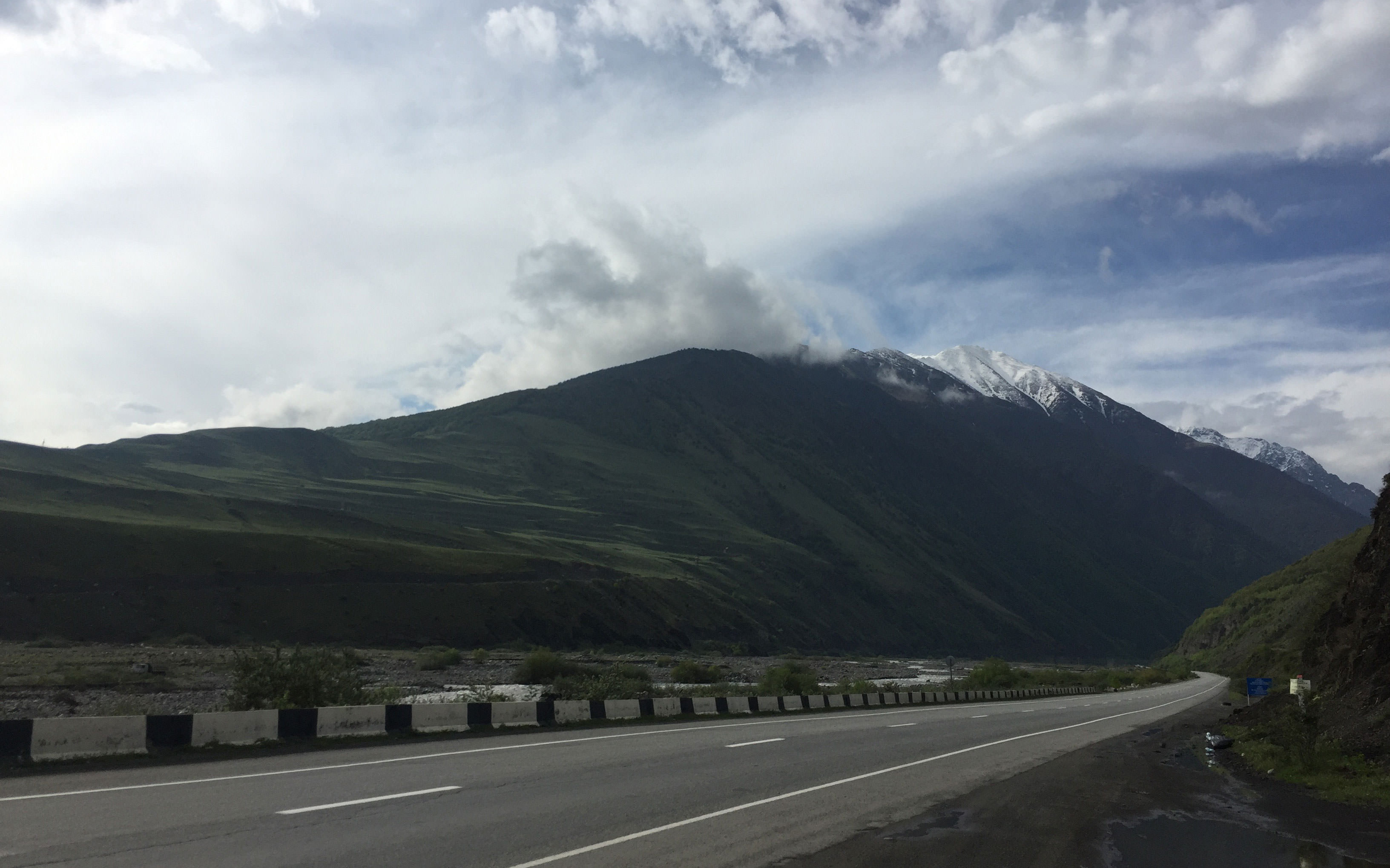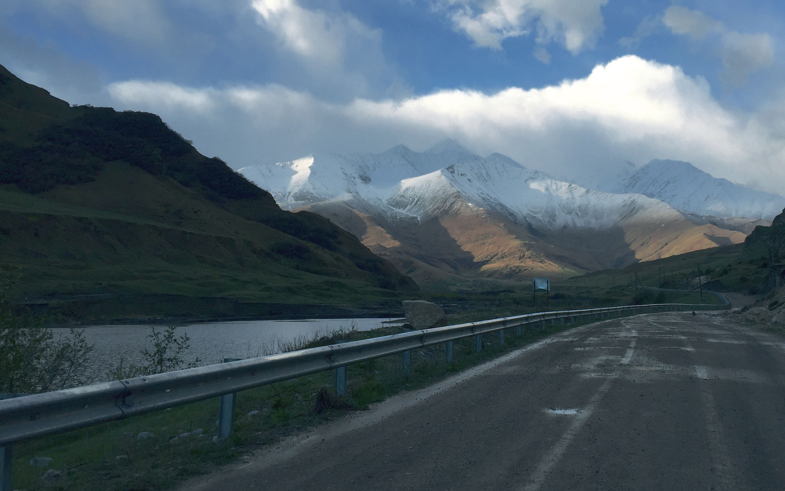 Но поехал я не в сторону Грузии, а на запад параллельно границе. Мне было что еще посмотреть у российского Кавказа. Высадился я в 15 км от Владикавказа у пустой дороги, пробирающейся к горам.