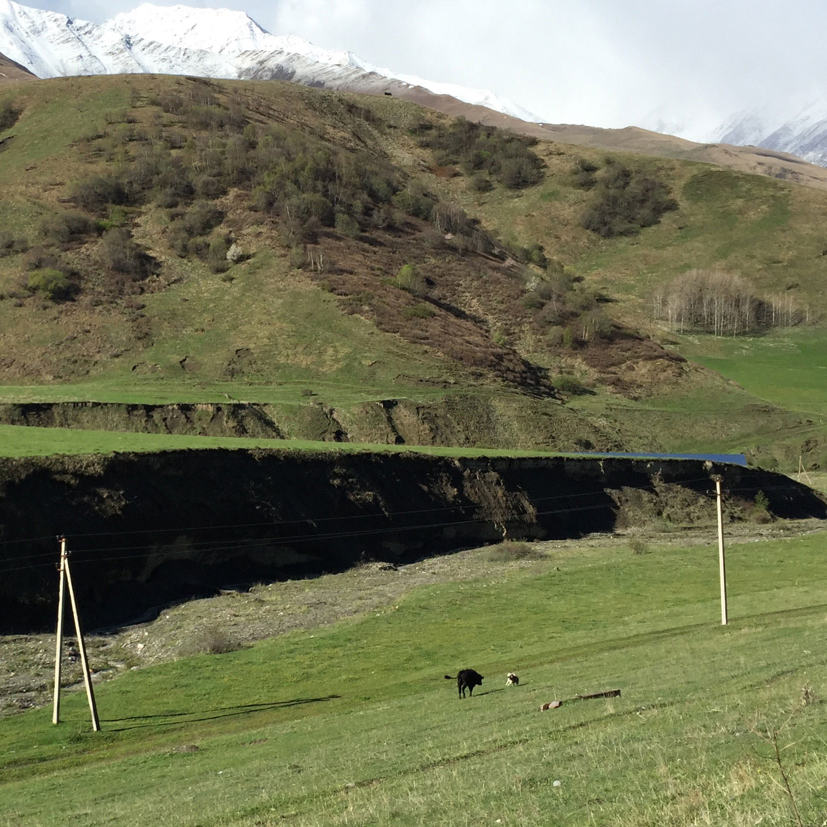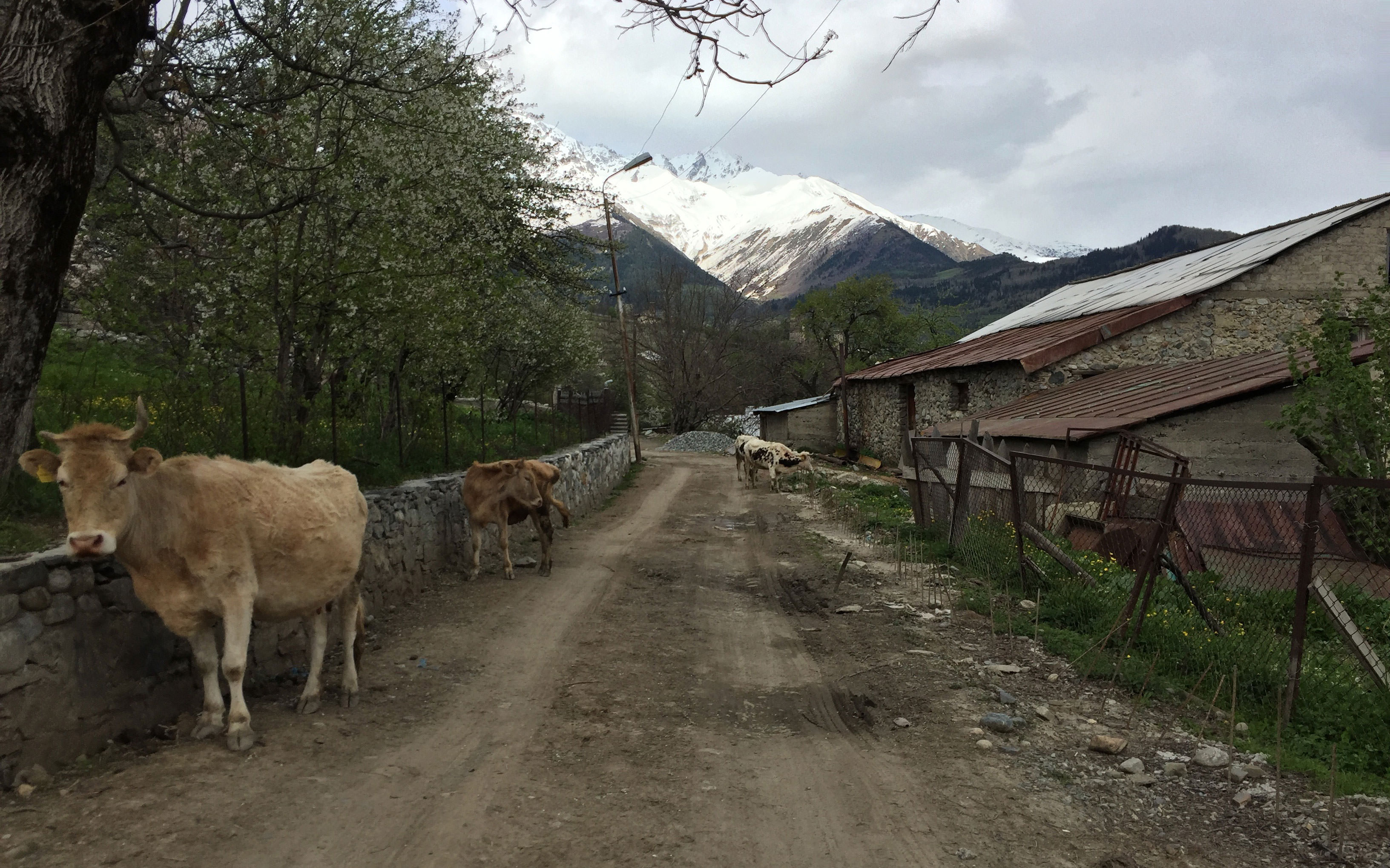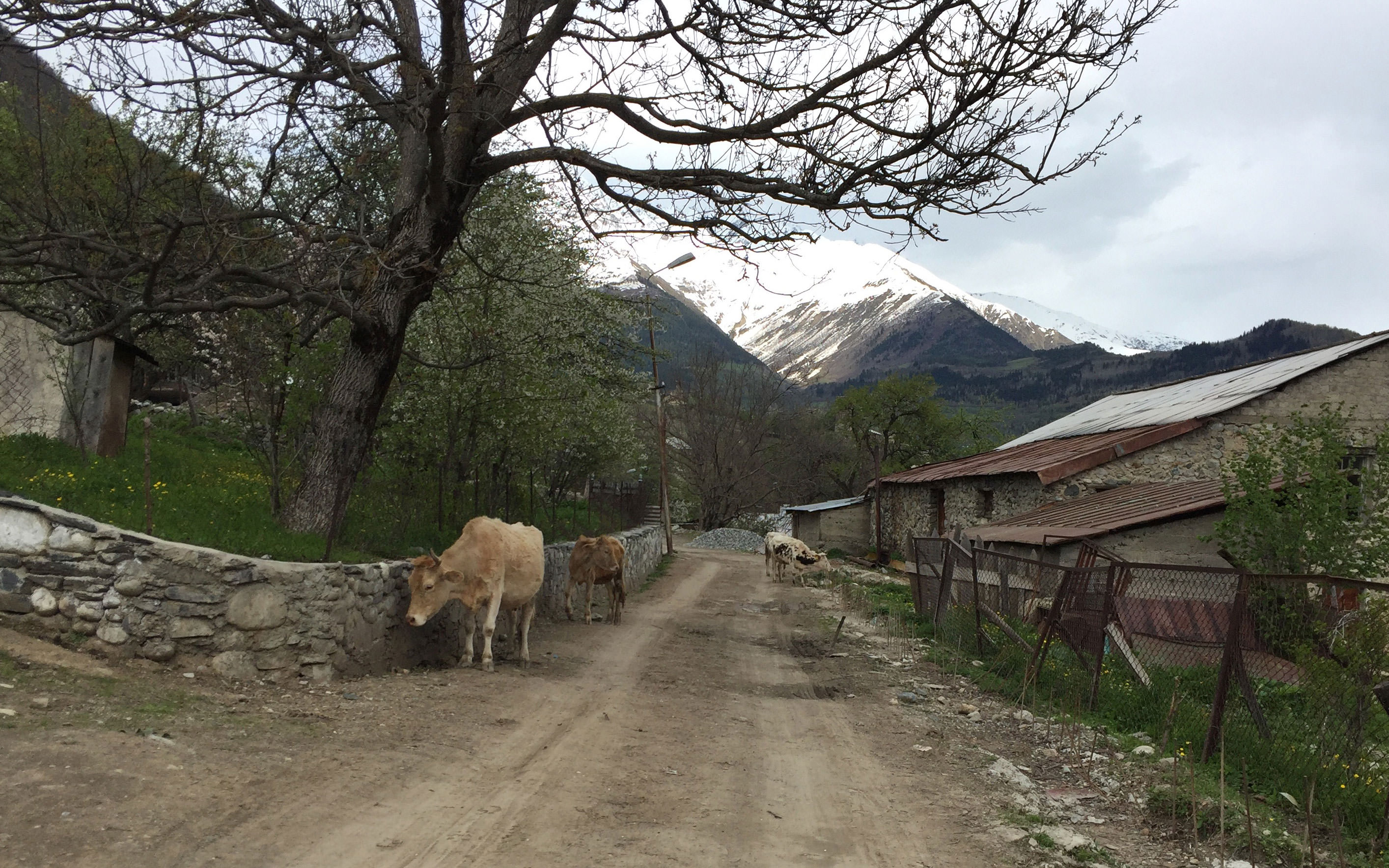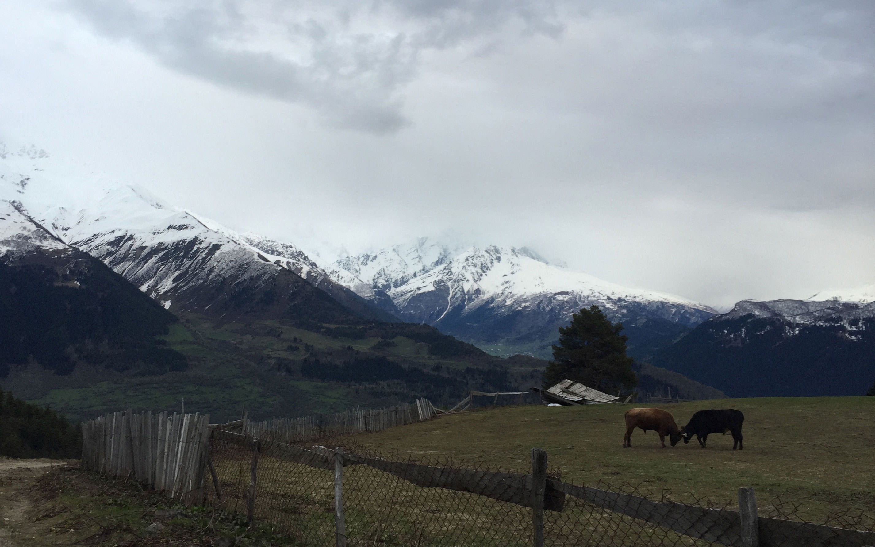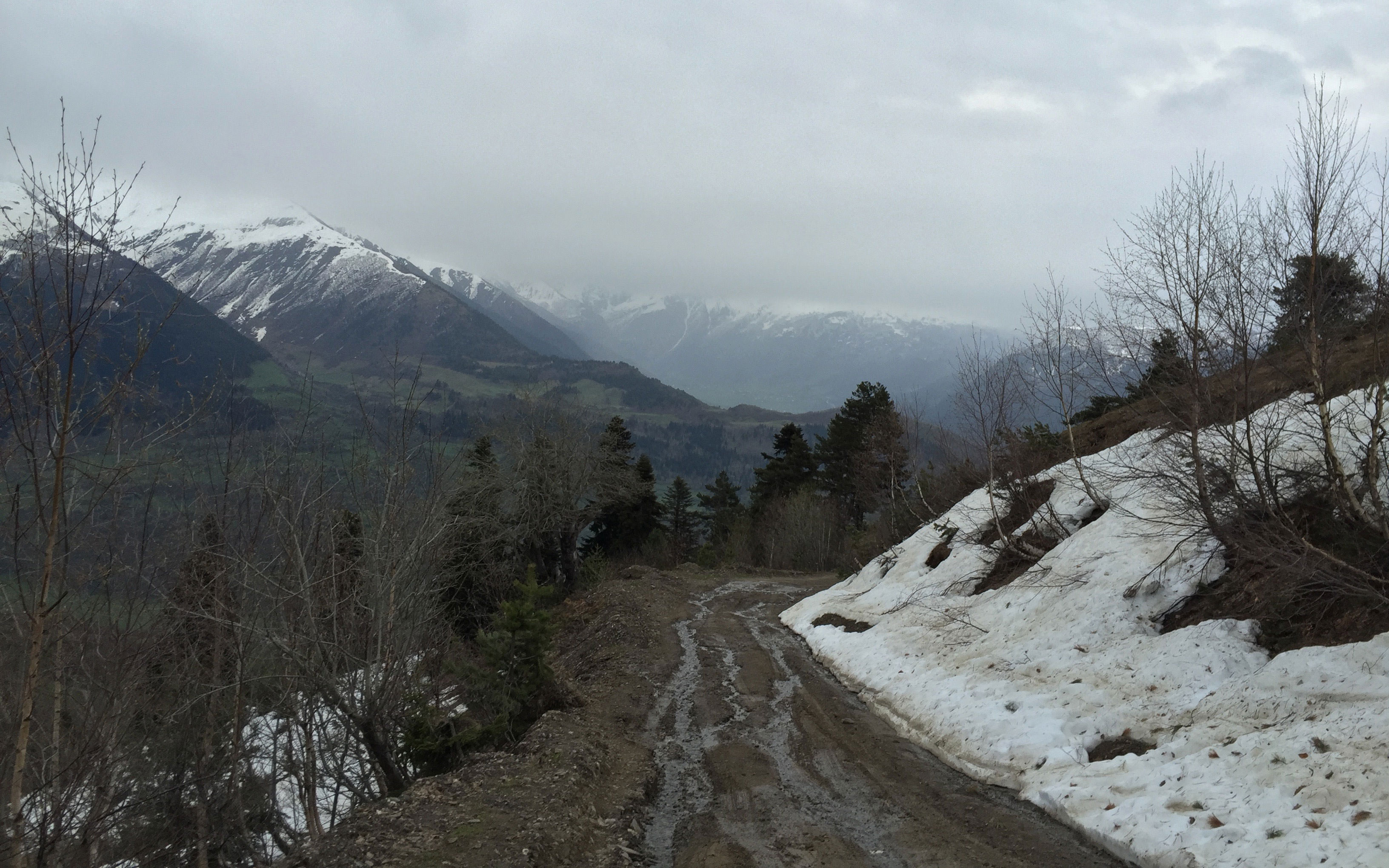 Пообщавшись с тетенькой, заведующей транспортом, оцениваю своё положение. Самая печаль — вторая дорога отсюда обратно до Кутаиси (через Ушгули) еще закрыта, не оттаяла. Не люблю дважды по одному маршруту ехать. Даже просто в Ушгули я не успею мотануться, и по сути у меня было здесь время лишь до завтрашнего утра. Очень коряво сработал переводчиком между этой тетенькой и англоязычным туристом, после чего не придумал ничего лучше, чем забраться на ближайшую гору и заночевать там.