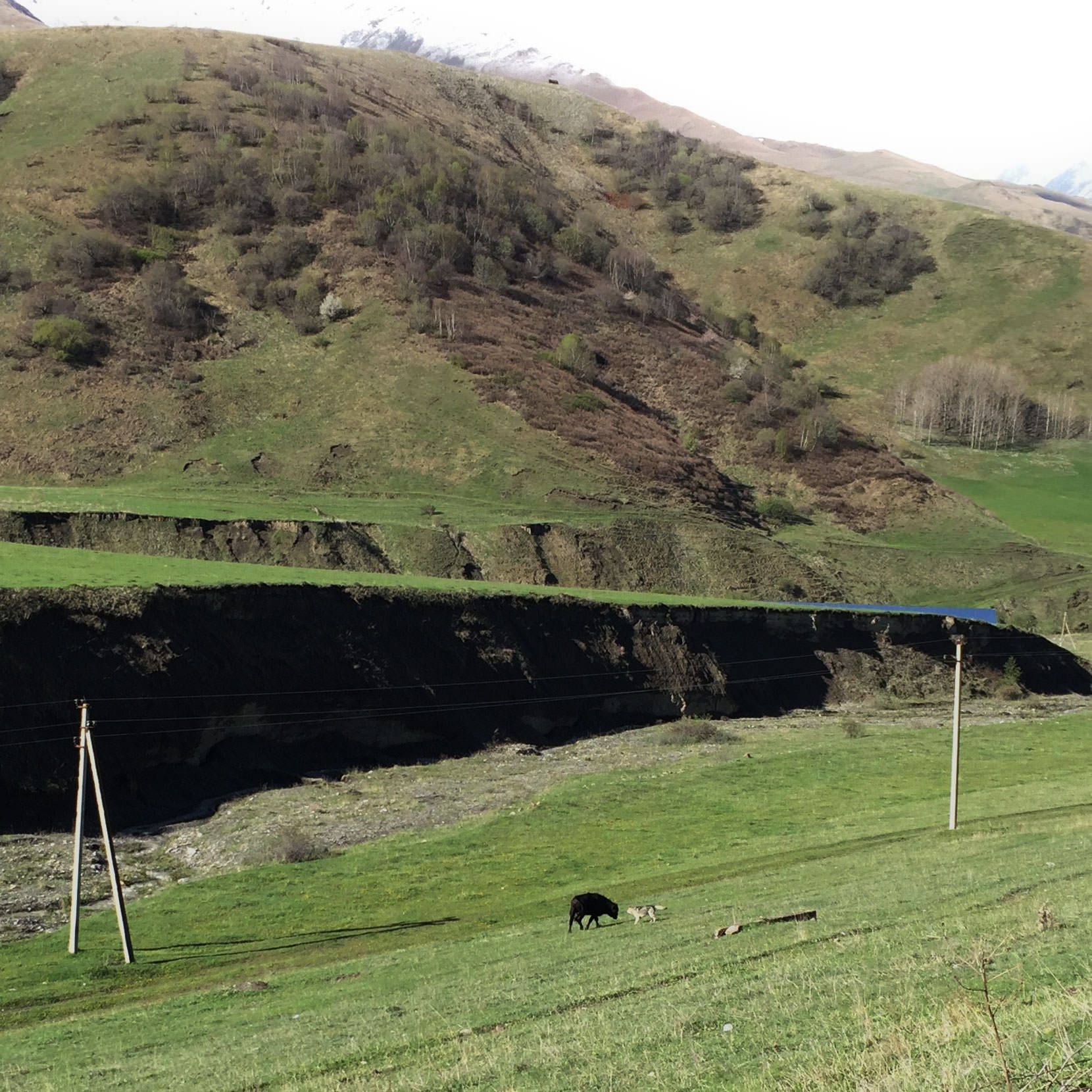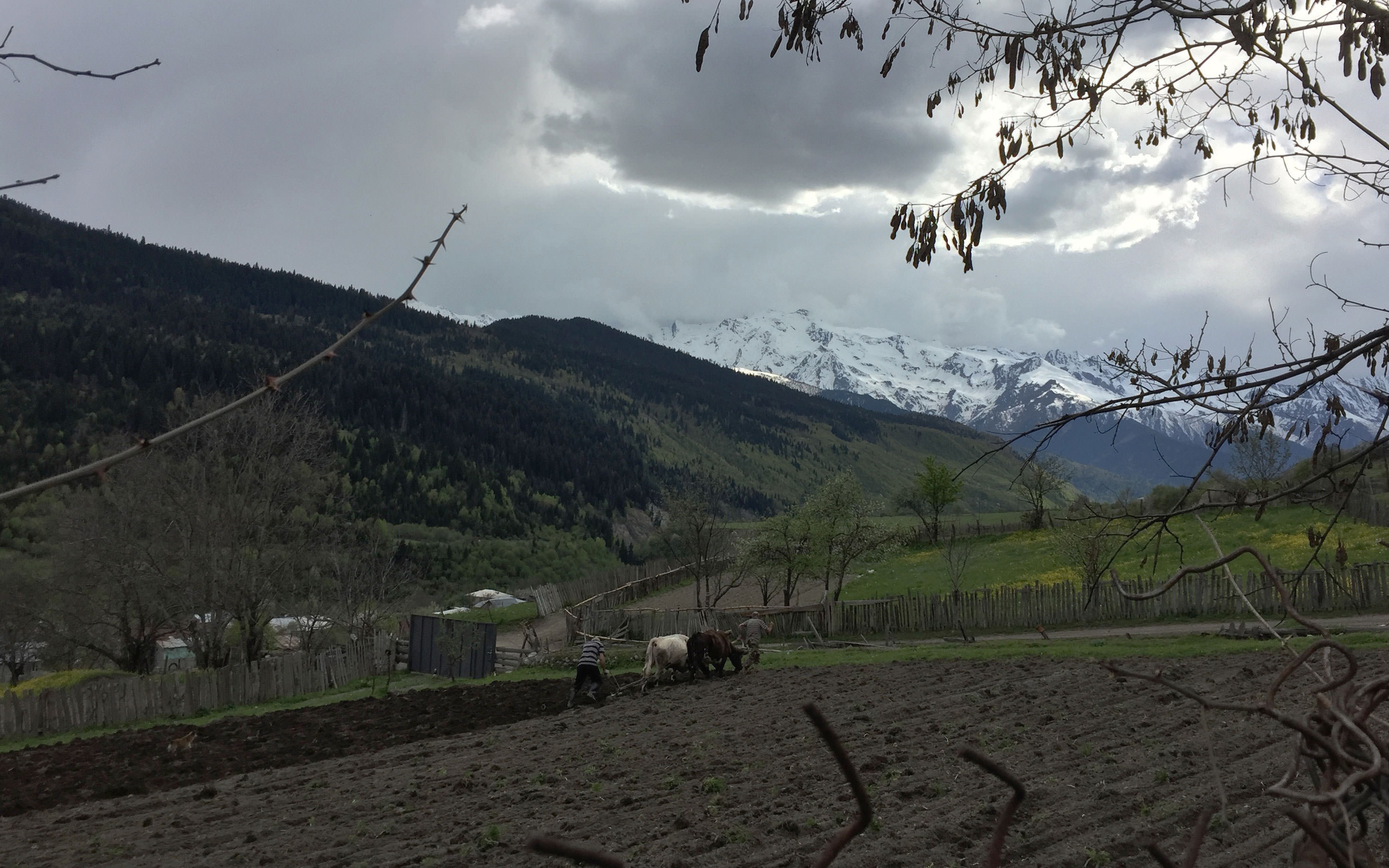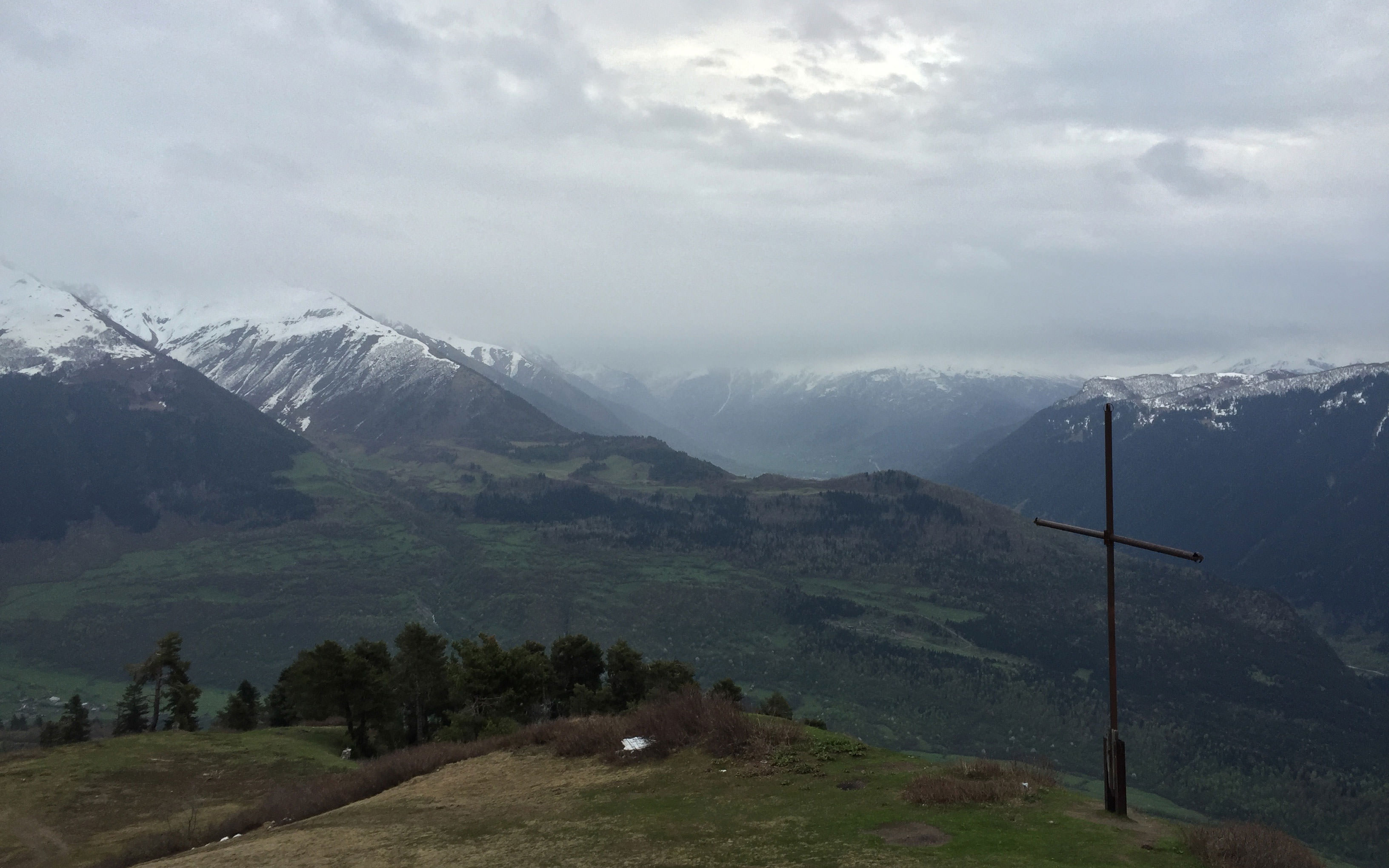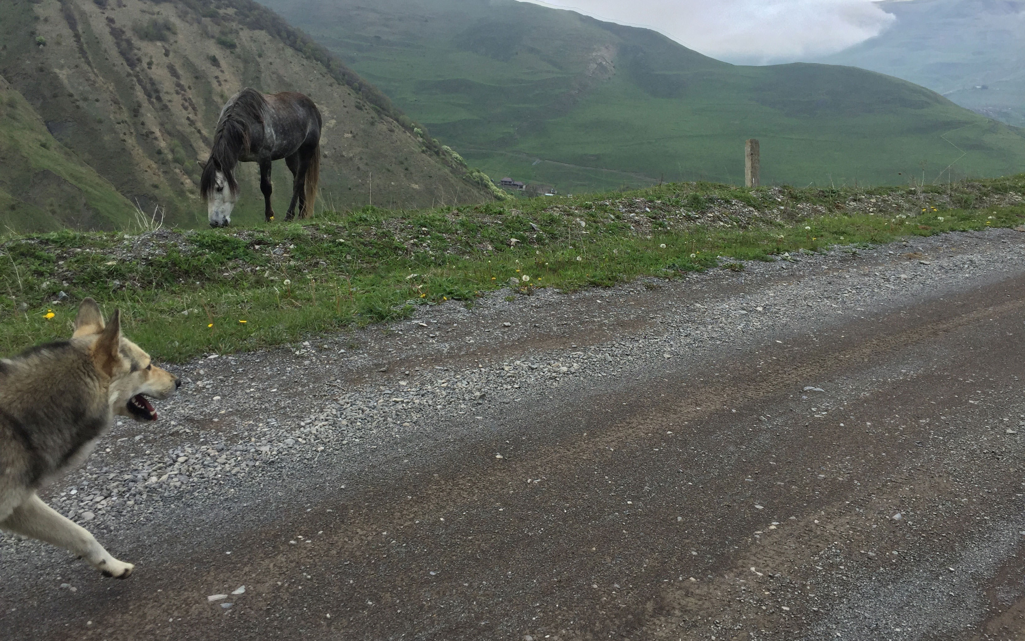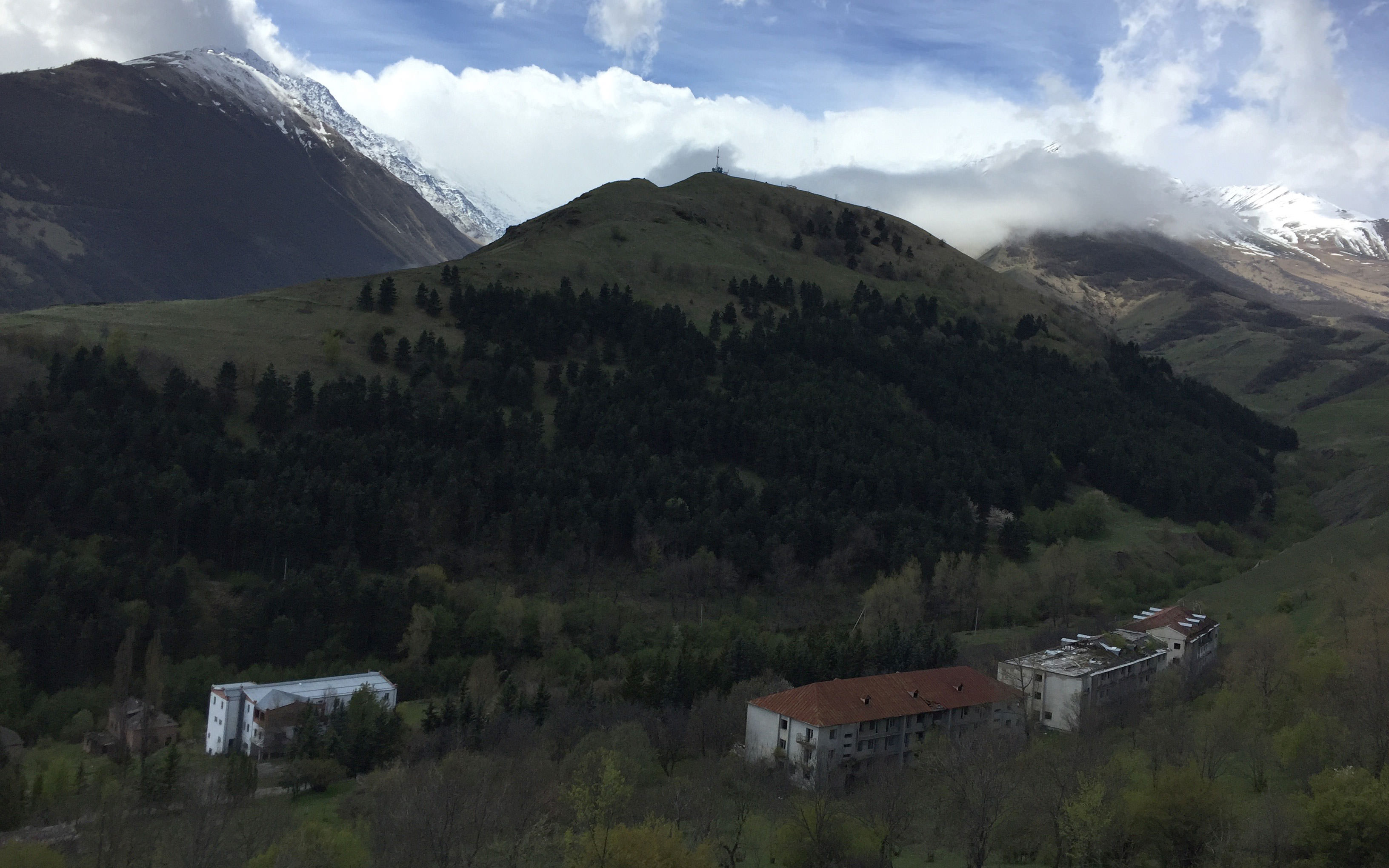 Пообщавшись с тетенькой, заведующей транспортом, оцениваю своё положение. Самая печаль — вторая дорога отсюда обратно до Кутаиси (через Ушгули) еще закрыта, не оттаяла. Не люблю дважды по одному маршруту ехать. Даже просто в Ушгули я не успею мотануться, и по сути у меня было здесь время лишь до завтрашнего утра. Очень коряво сработал переводчиком между этой тетенькой и англоязычным туристом, после чего не придумал ничего лучше, чем забраться на ближайшую гору и заночевать там.