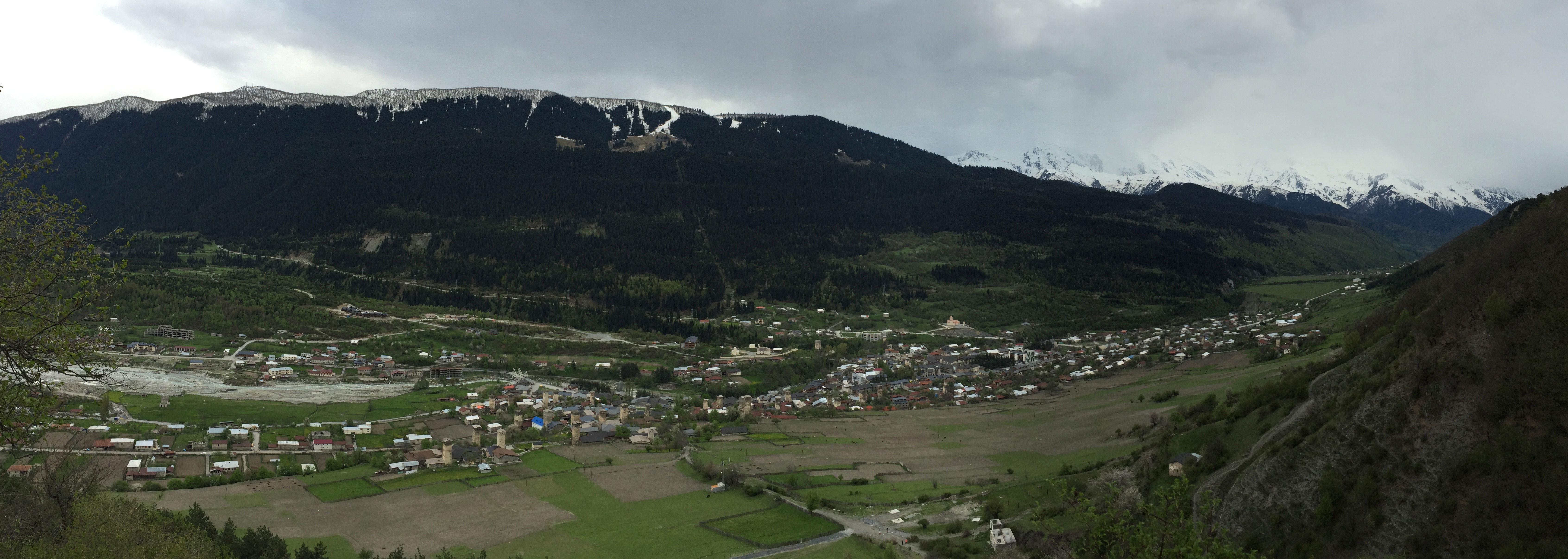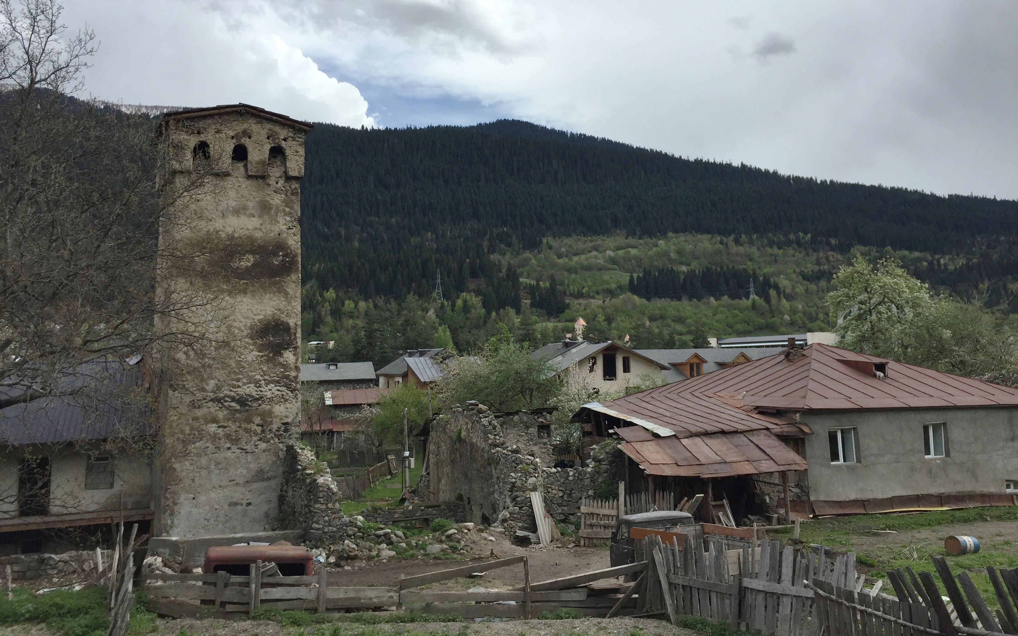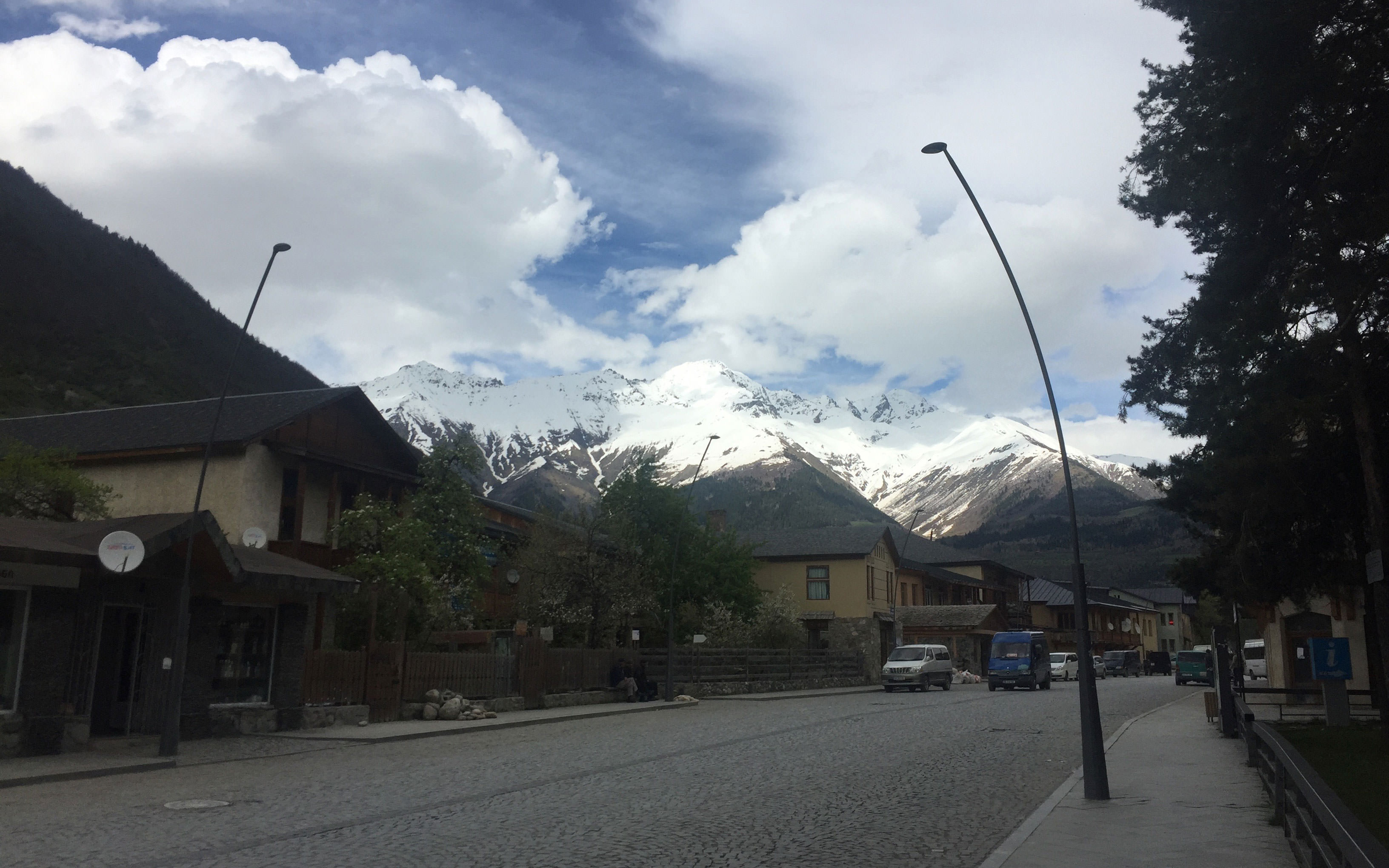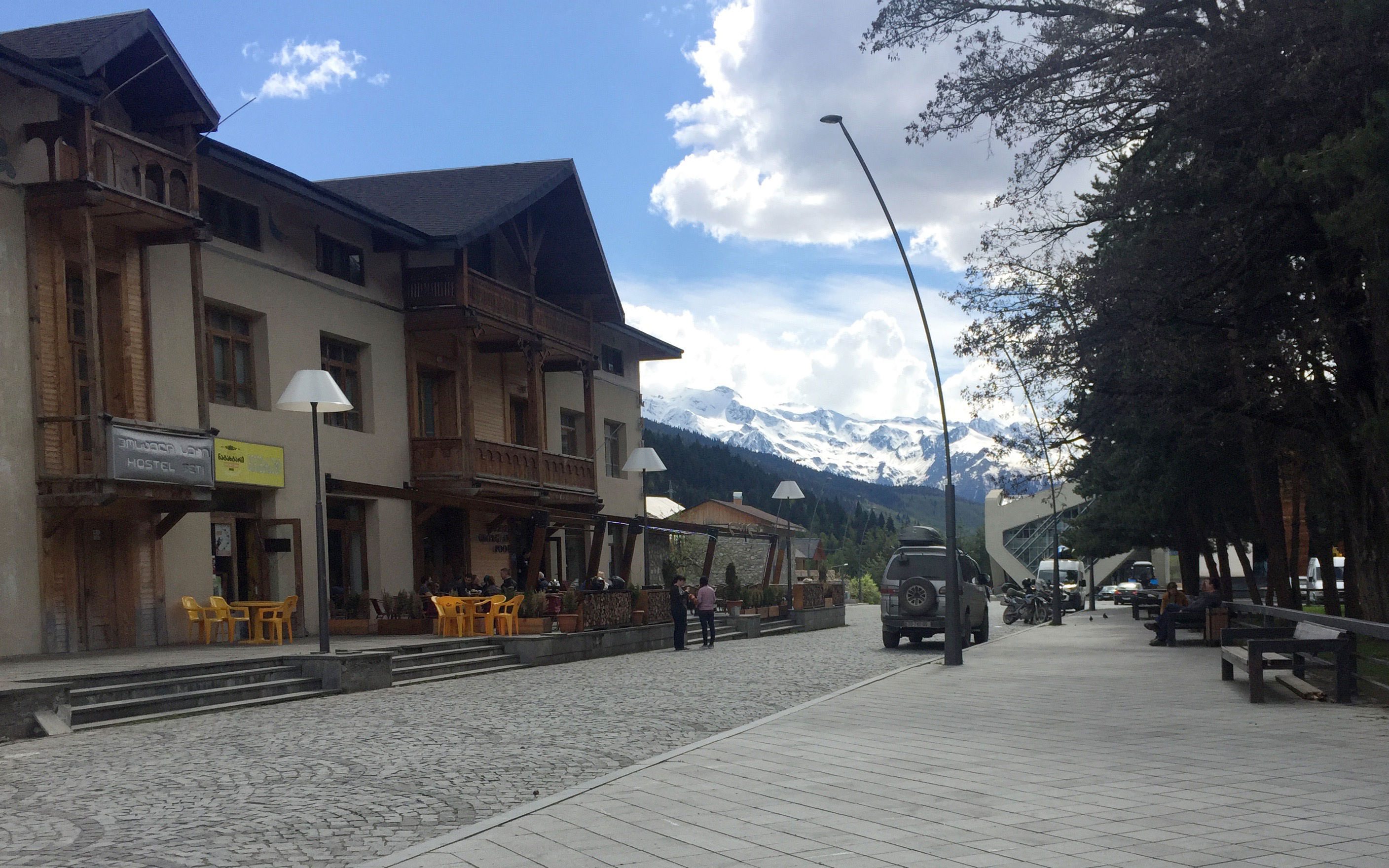 Приехав в Местию после почти 6 часов пути, немного разочаровываюсь — это тоже слишком курорт, пусть и респектабельный. Тут даже аэропорт есть. Аспен какой-то. Развалины + новострой для туристов из дальнего зарубежья, которых тут очень много.