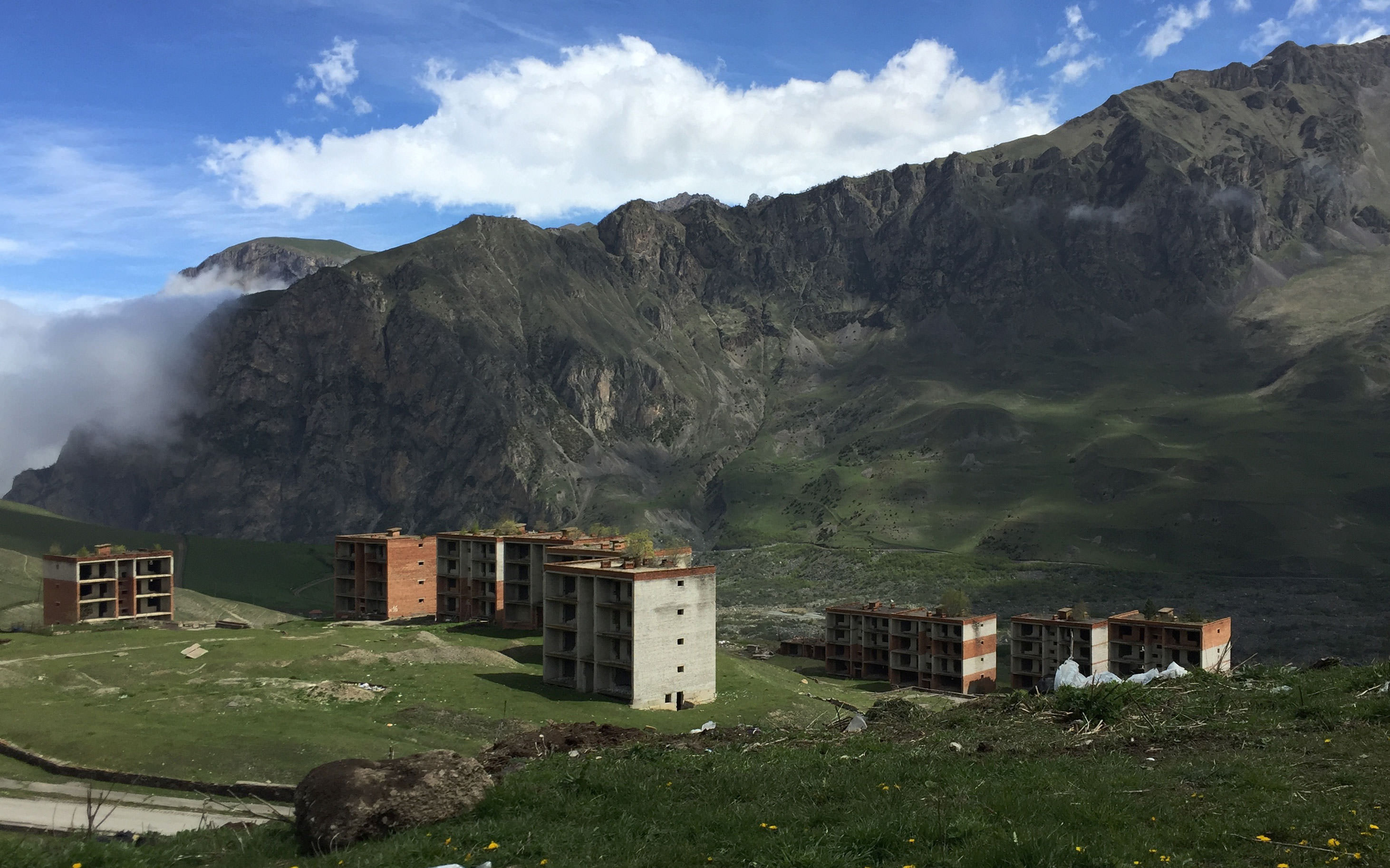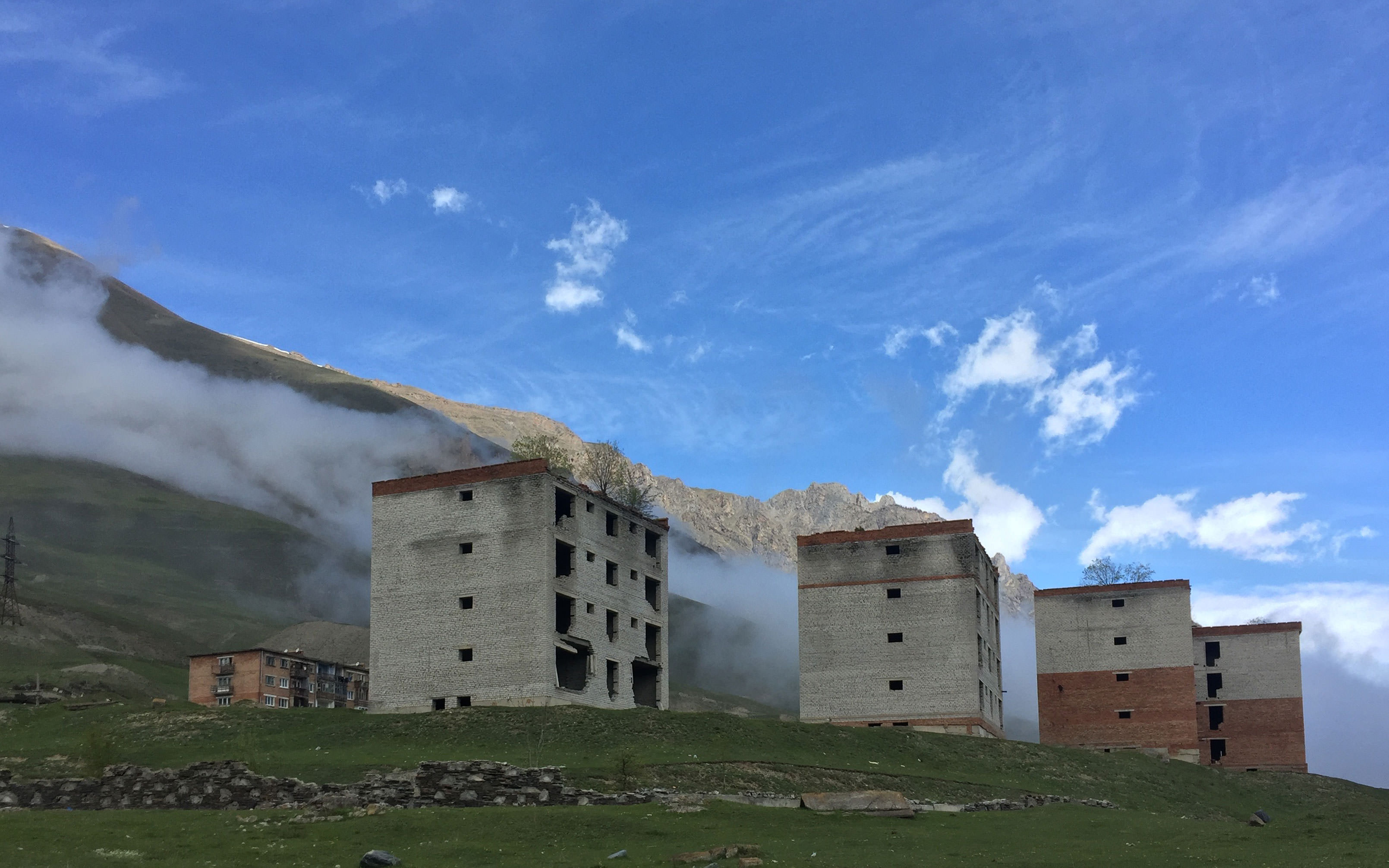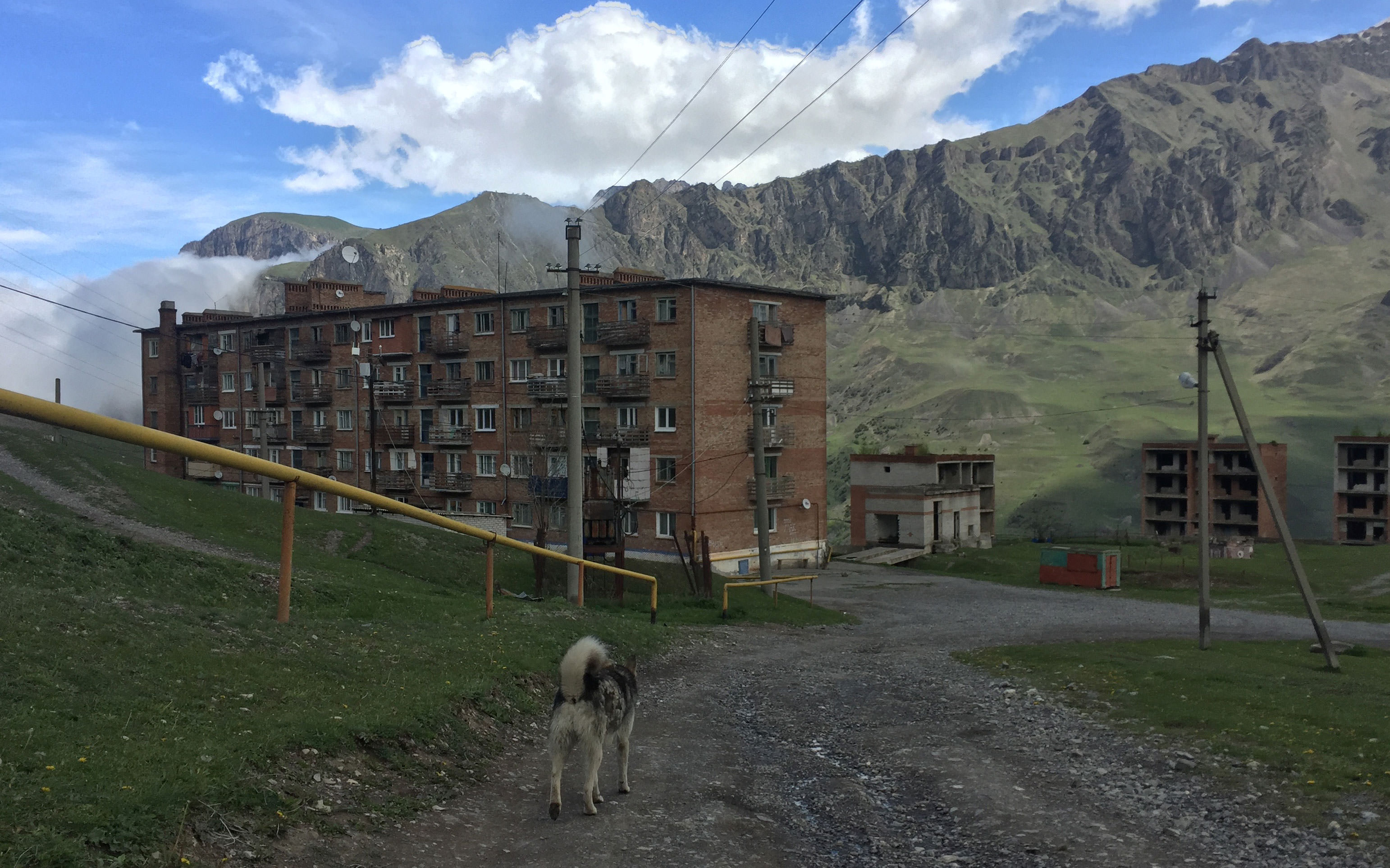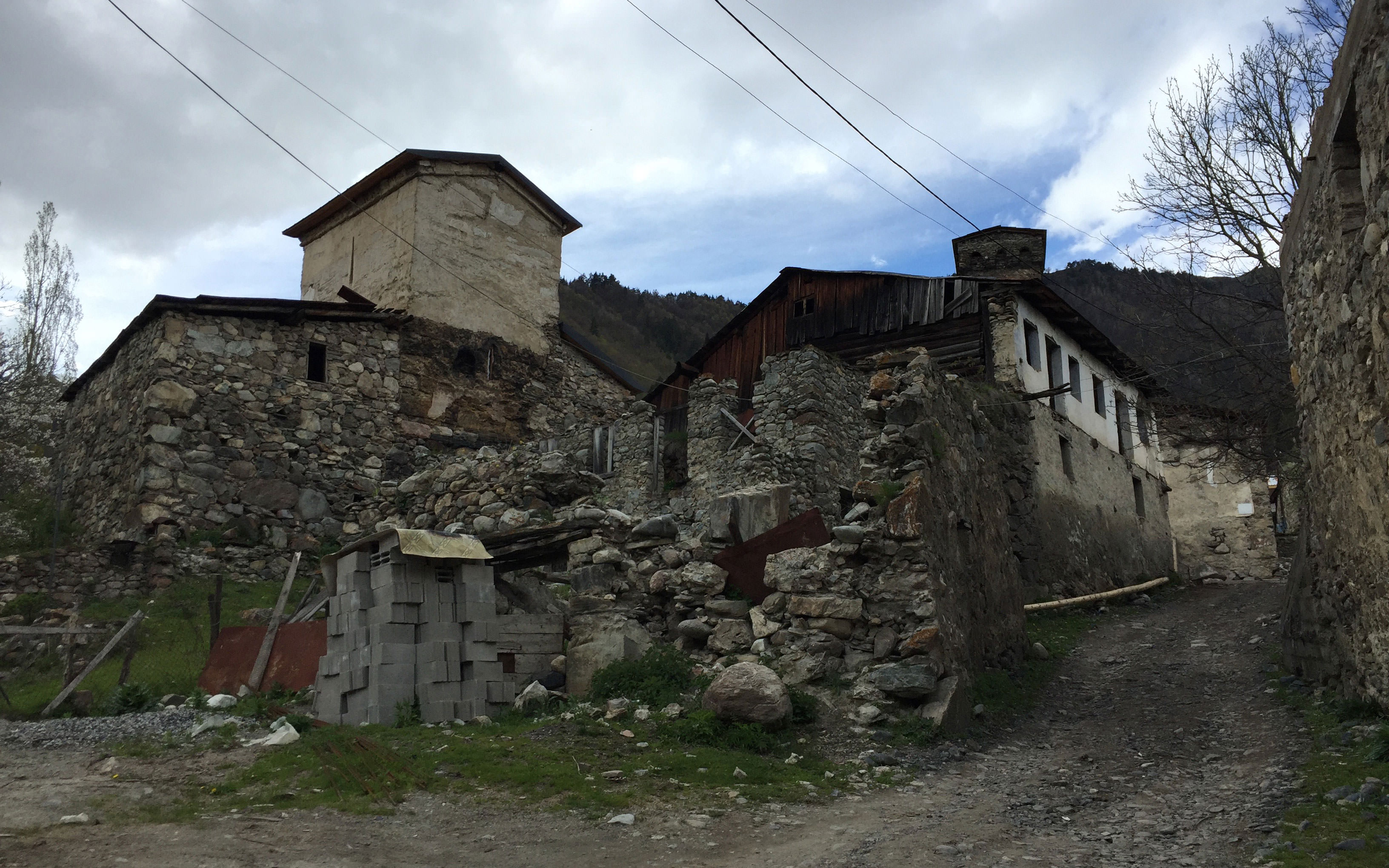 Приехав в Местию после почти 6 часов пути, немного разочаровываюсь — это тоже слишком курорт, пусть и респектабельный. Тут даже аэропорт есть. Аспен какой-то. Развалины + новострой для туристов из дальнего зарубежья, которых тут очень много.