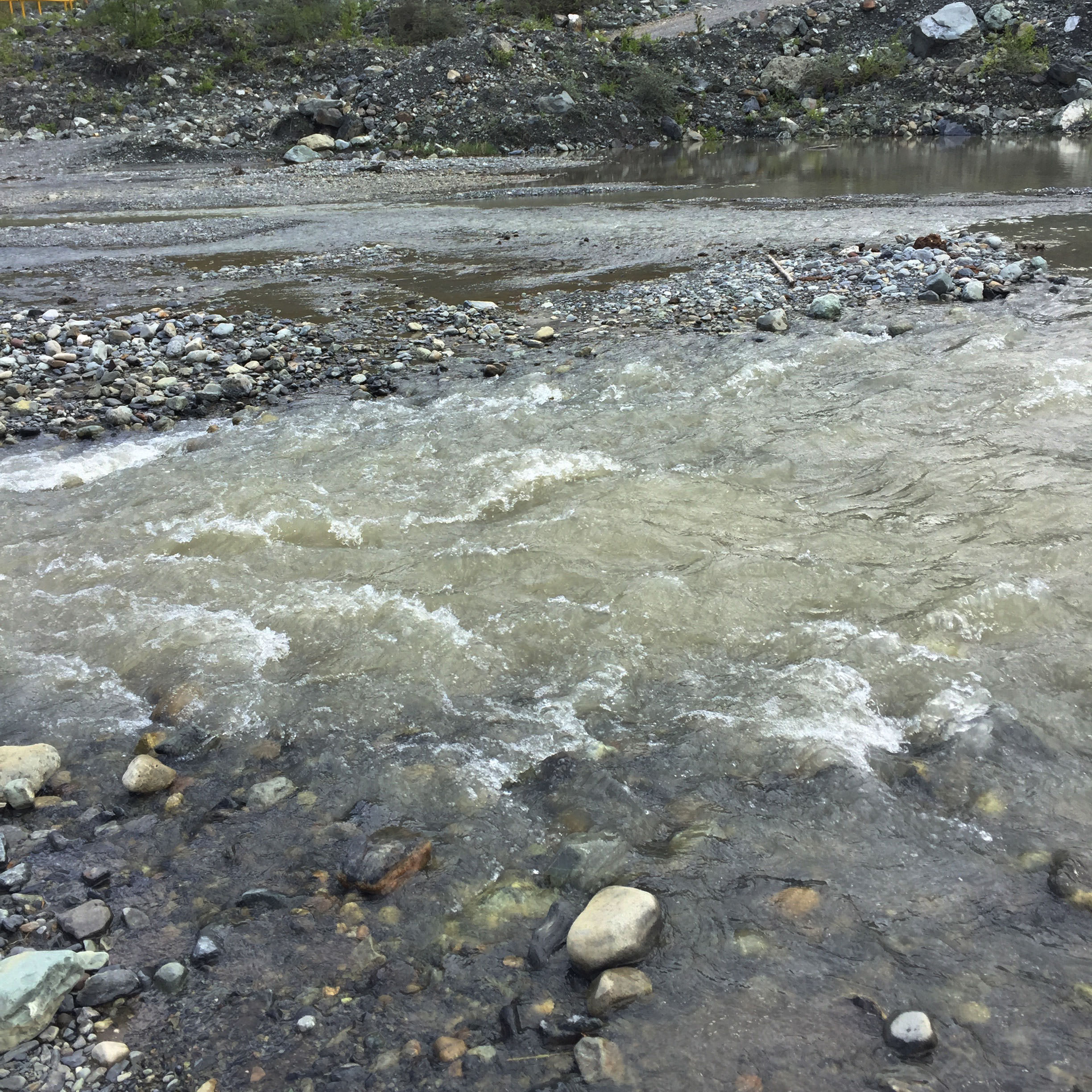 Пройти по берегу через нее затруднительно, поэтому я пробираюсь через стройку к трассе.