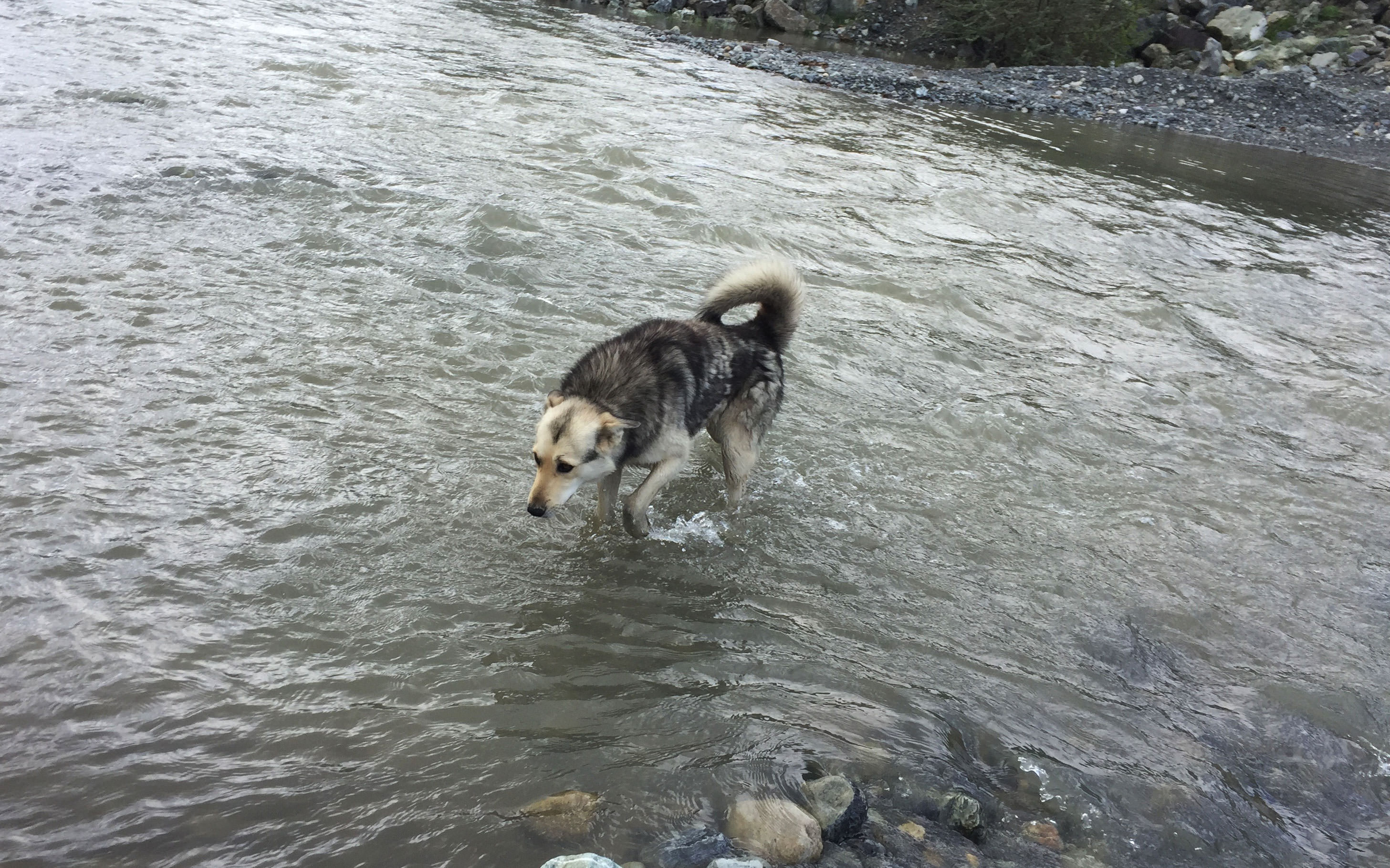 Я поднял палку и кинул ее, но она упала в лужу, и собака во мне разочаровалась. Так и осталась там возле лужи. Так что наши отношения длились метров 50.