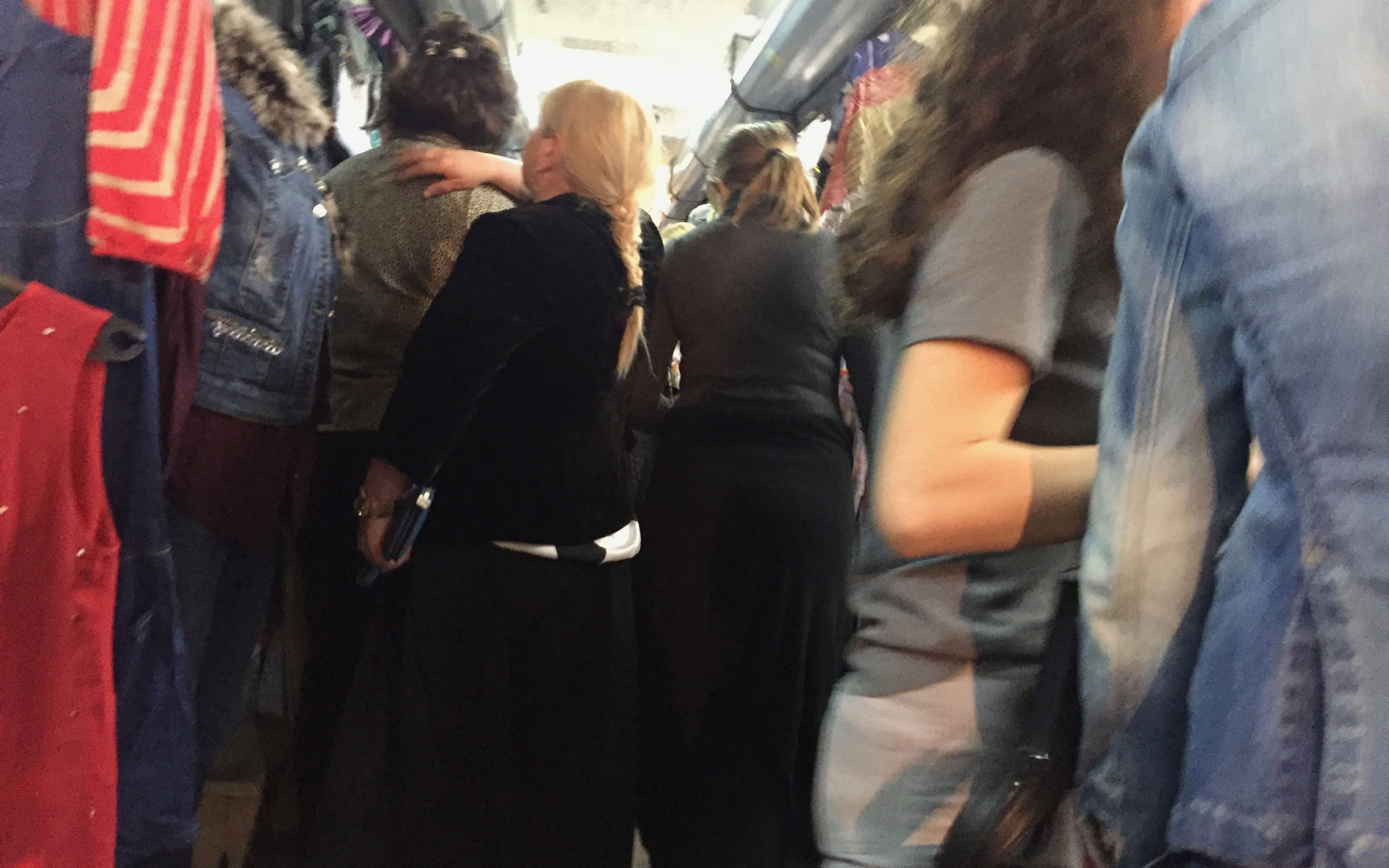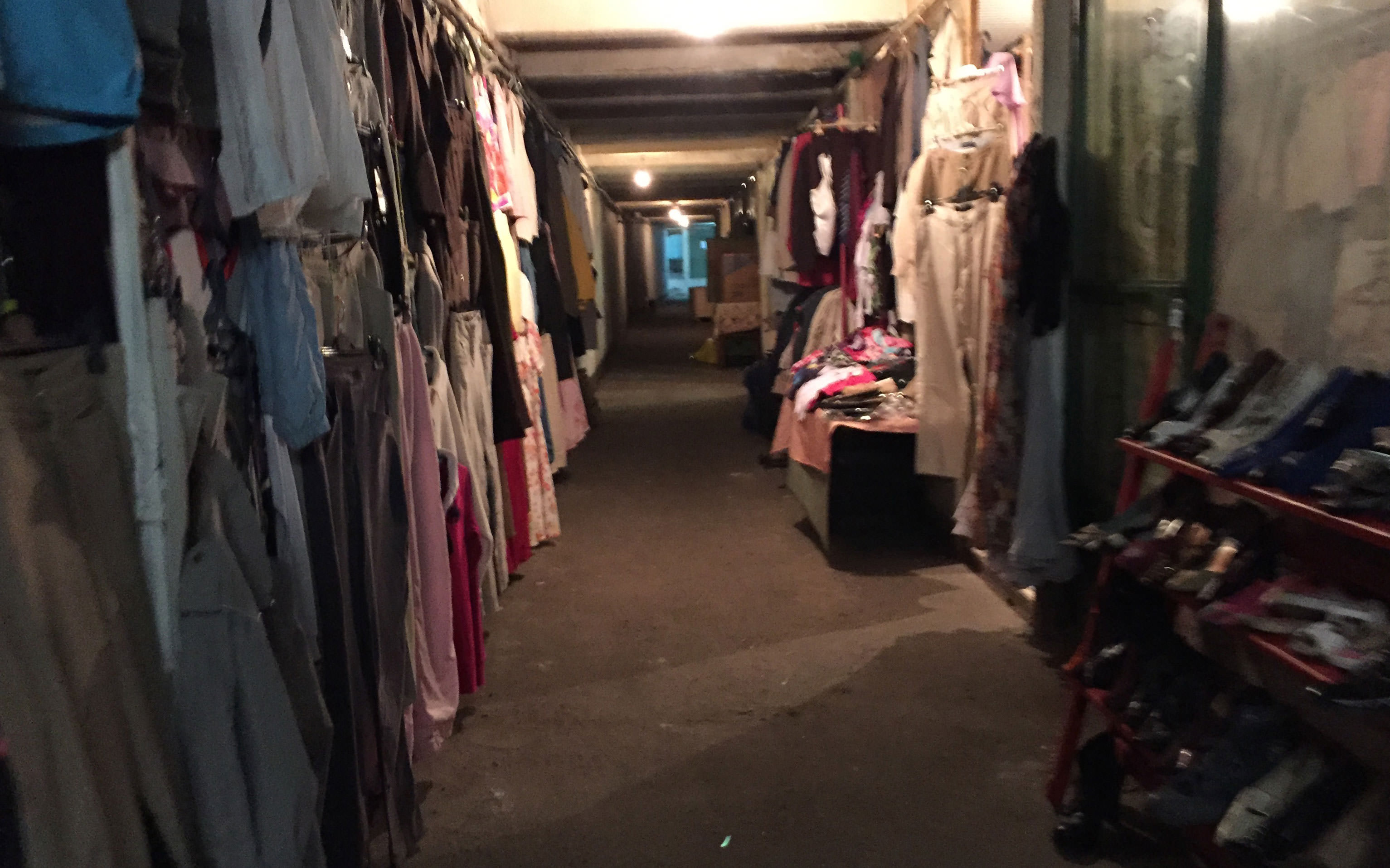 Подземный переход был заполнен лавками шмоток. Найти выход на другую сторону дороги довольно затруднительно, пробраться до него еще сложнее