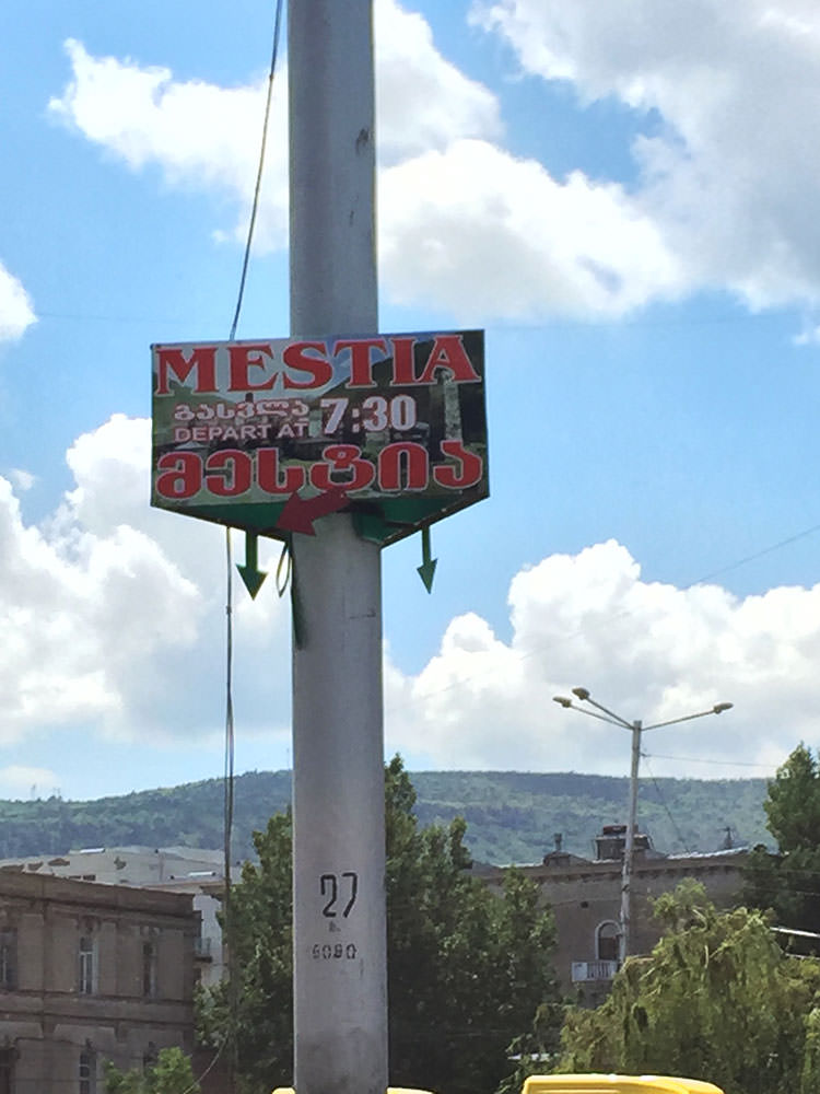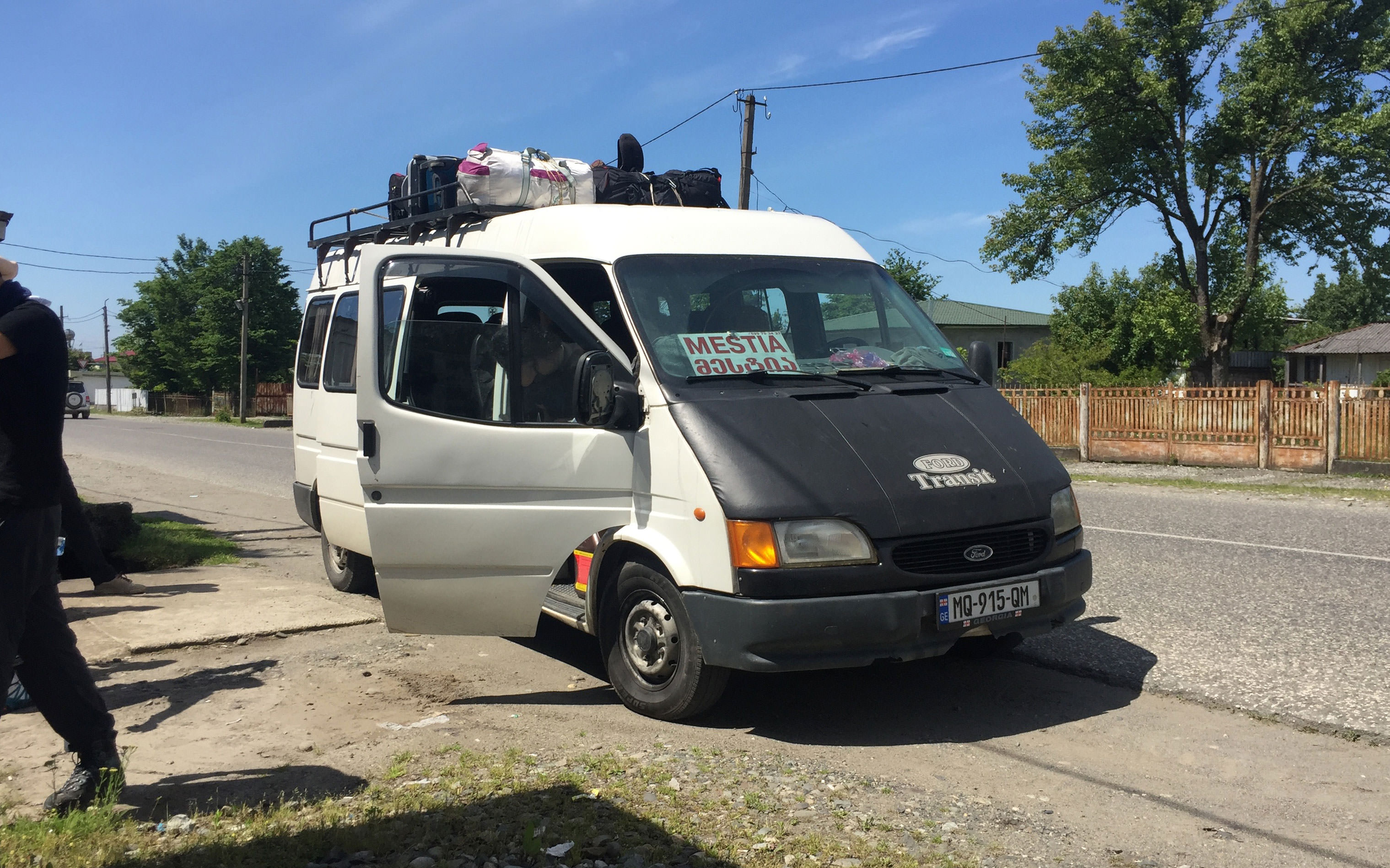 Понятно, что в горы поезда не ходят, но мне пока достаточно подобрать к ним поближе. Например, добраться до Кутаиси. Оцениваю расписание, возвращаюсь к маршруточникам оценить их предложение. На машине выходит пошустрее, так что я закидываю вещи в пустую маршрутку и жду отправления. Время — 12:37.