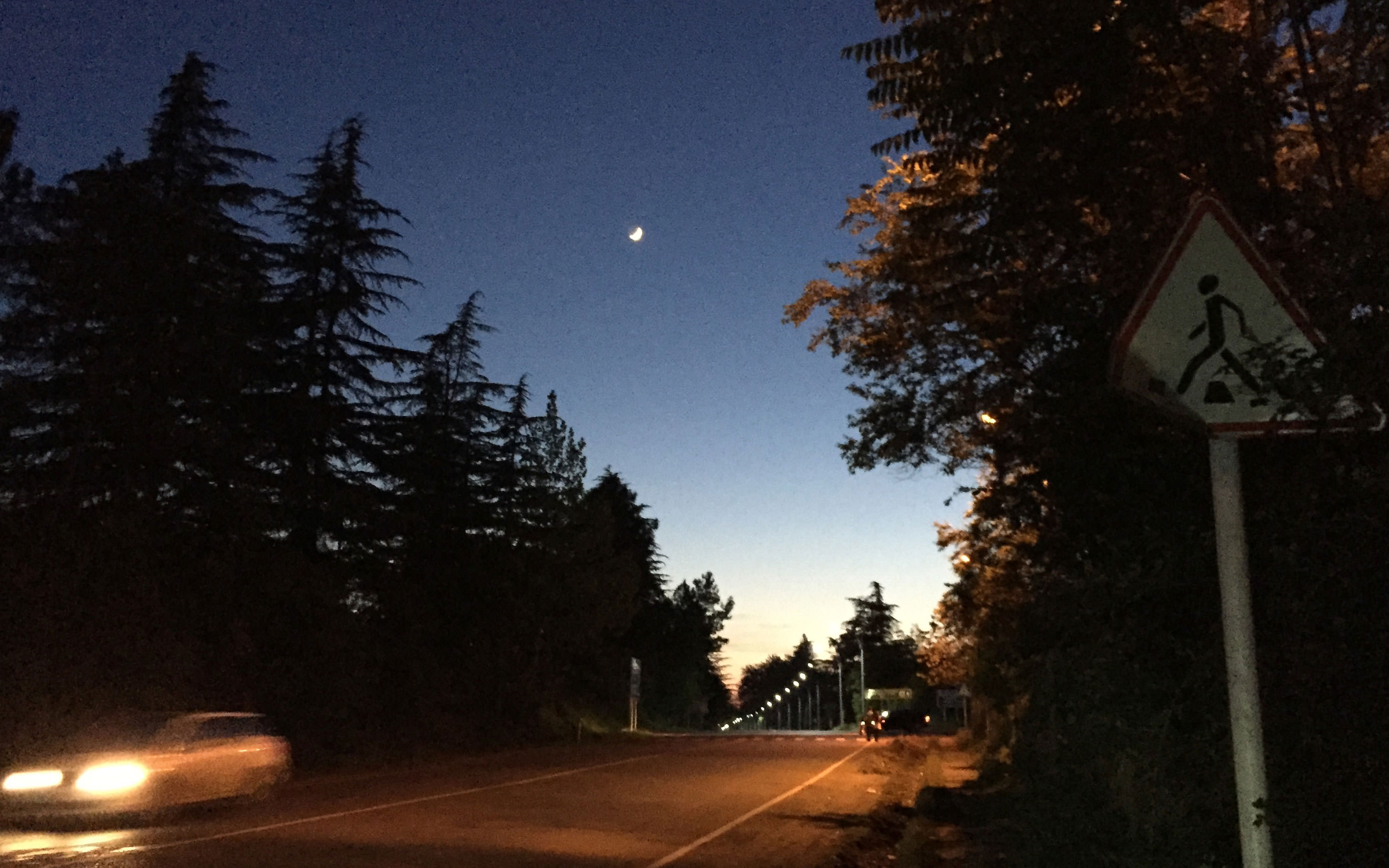 Довольно скоро освещаемый участок трассы закончился, да и мне, согласно карте на телефоне, пора было спускаться вниз к тропе.