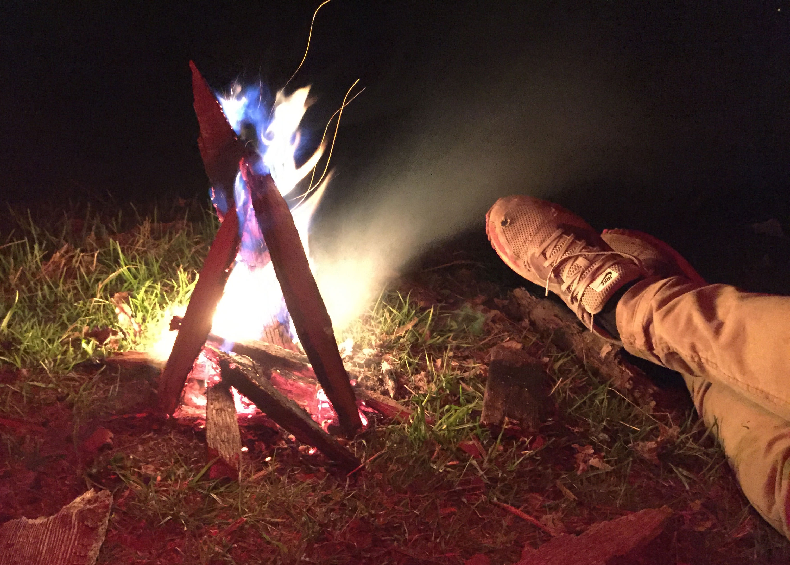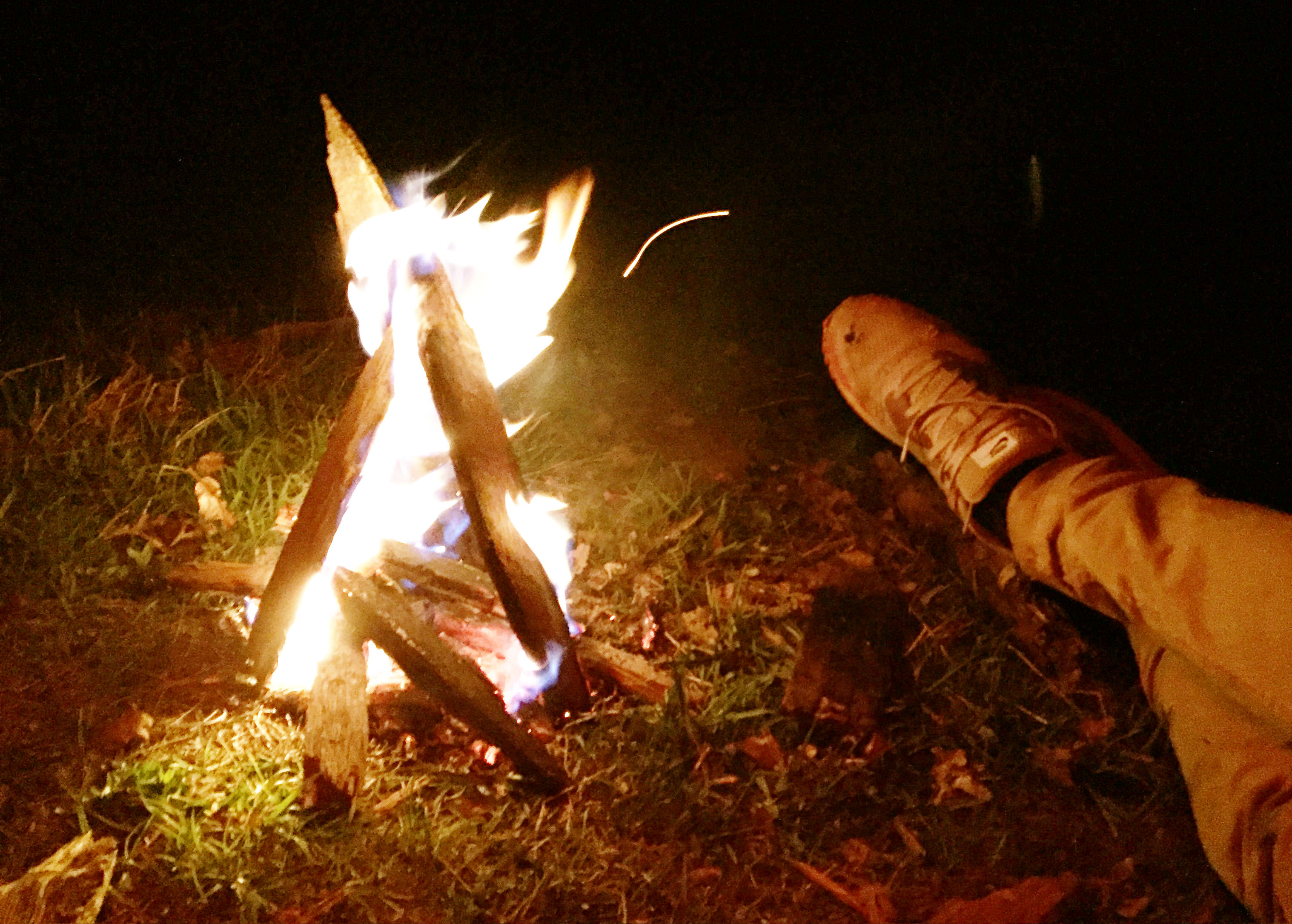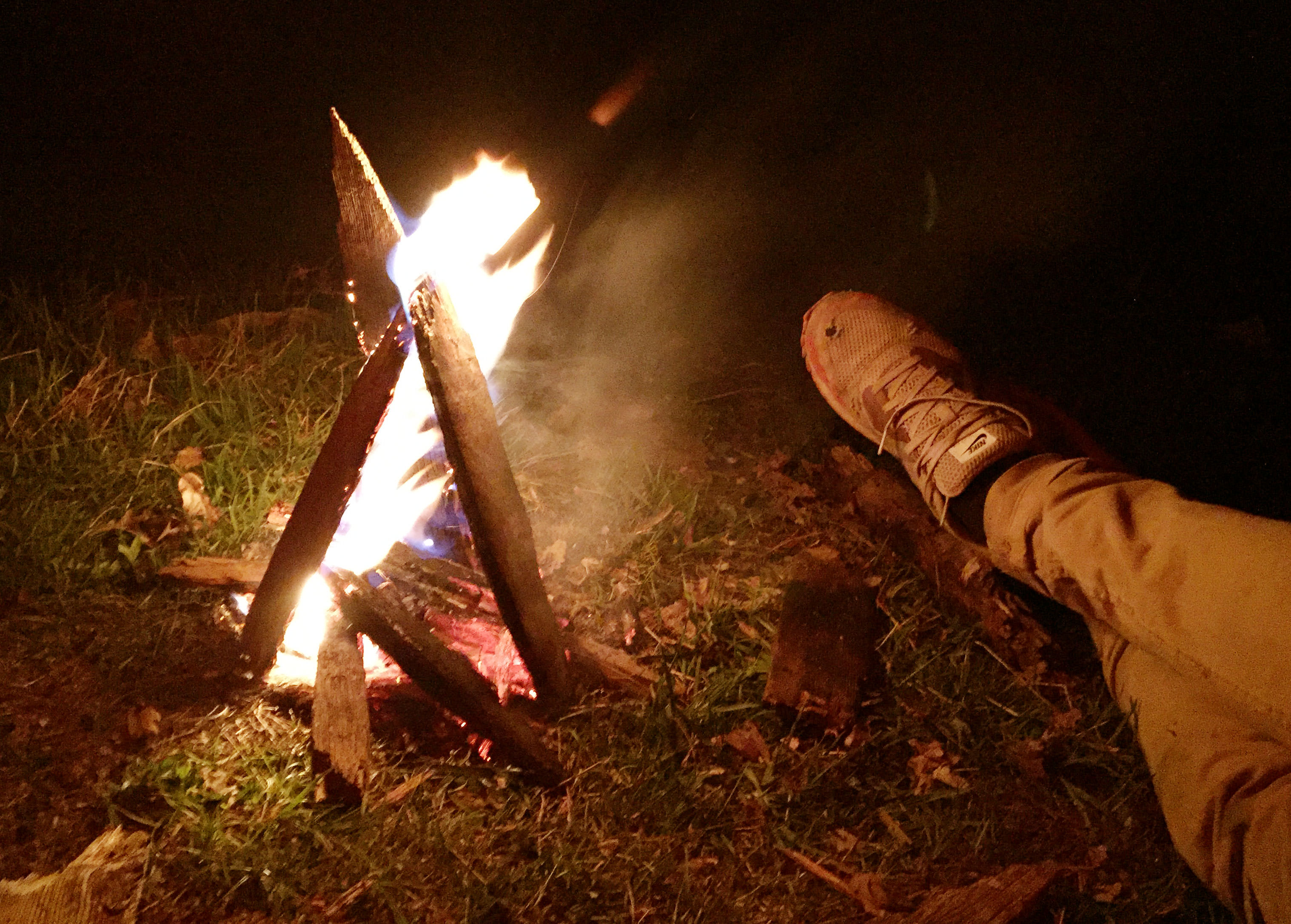 Зная, что это будет одна из самых холодных ночей, решаю впервые развести костер, воспользовавшись обломками забора неподалеку. Костер вел себя совершенно по-ублюдски, заставлял меня чувствовать себя беспомощным. Через 20 минут на коленях даже уже немного согрелся, орудуя щепками и сухими листьями, и провонял дымом, но огня всё не было. Больше нервов сжег. И когда уже на отъебись бросаю в угольки два листика, он какого-то хуя разгорелся.